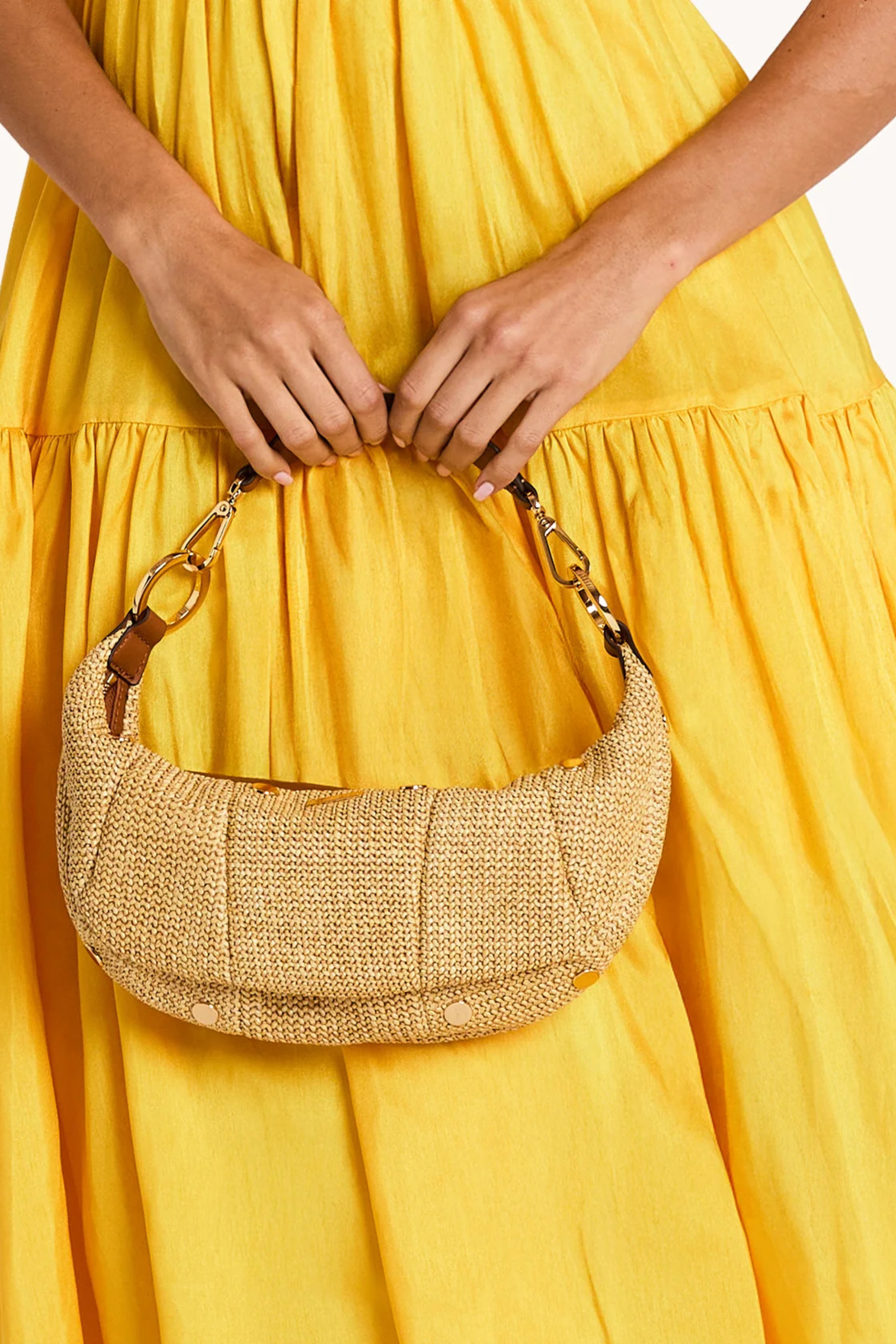 Chic, compact, and effortlessly versatile, the Erica Sml Handbag by Hammitt in Cocoa Raffia is the perfect finishing touch for warm weather style. Crafted with woven raffia and accented with rich leather trim and signature Hammitt hardware, this designer handbag blends relaxed texture with polished sophistication. Ideal for brunch dates, vacation dinners, or everyday outings, it pairs beautifully with a breezy floral midi dress, a crisp summer mini dress, or a polished statement blouse and denim.