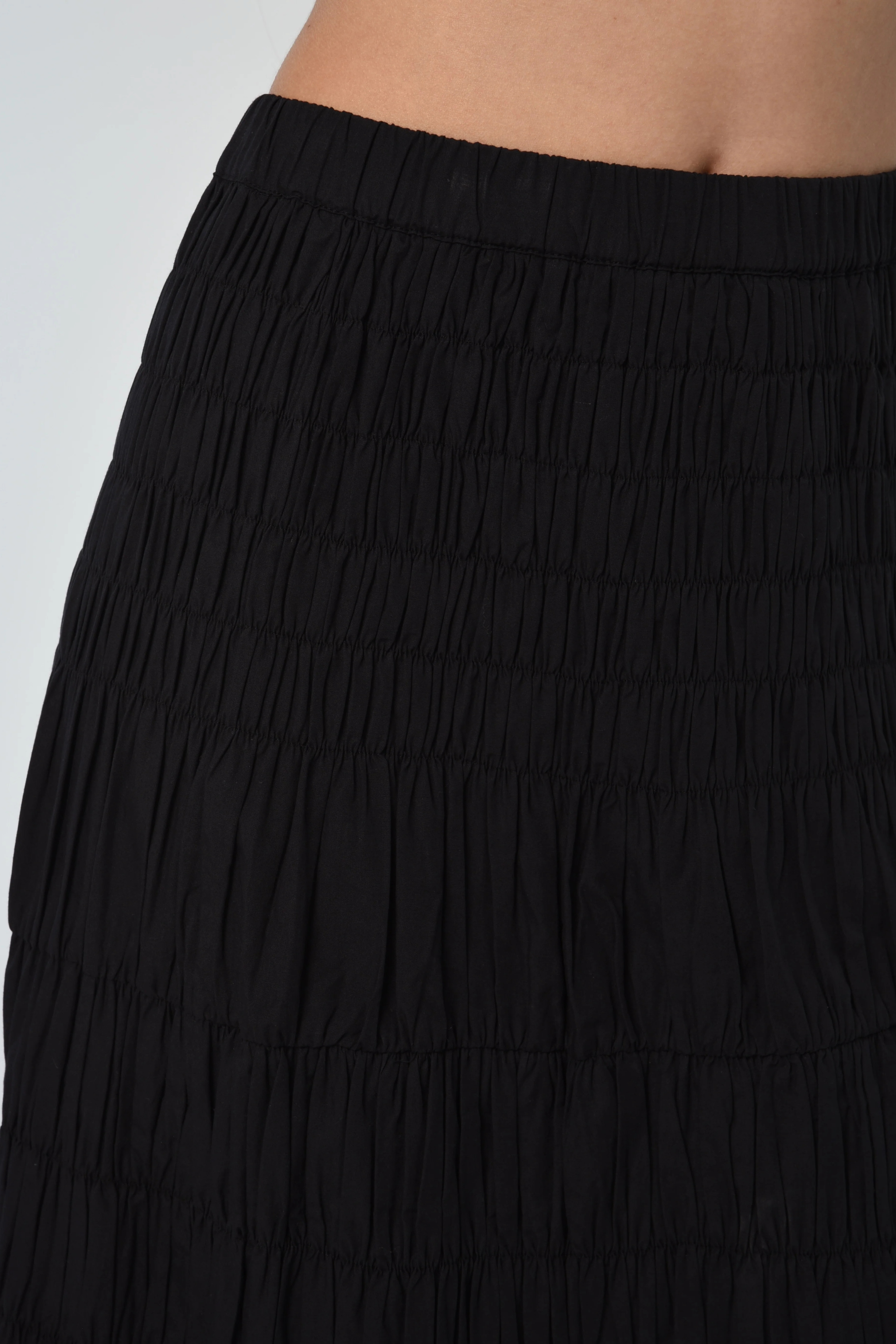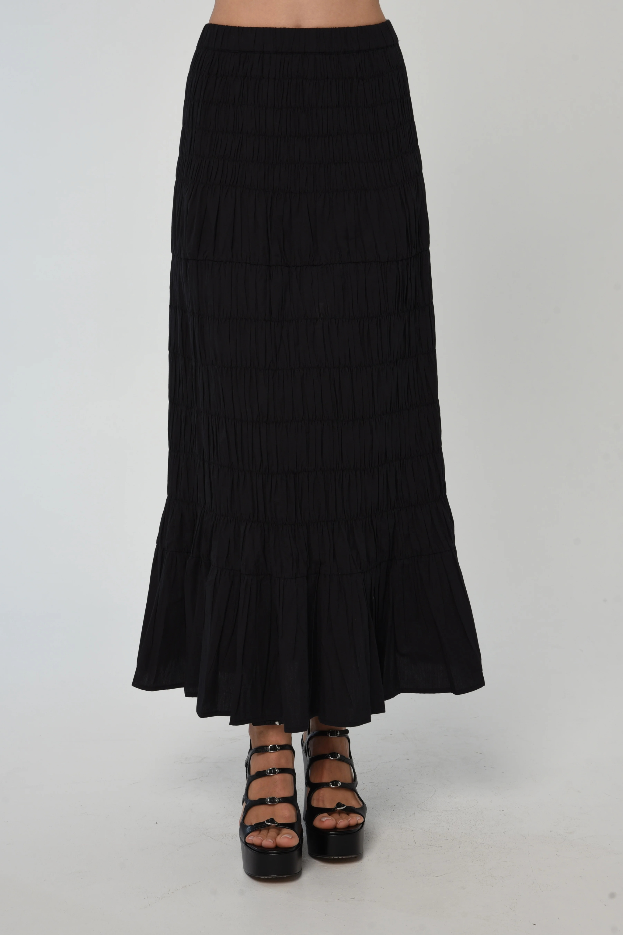 The Kelly Skirt in Black is a wardrobe staple! Designed with smocking throughout the body and a comfortable encased elastic waistband.