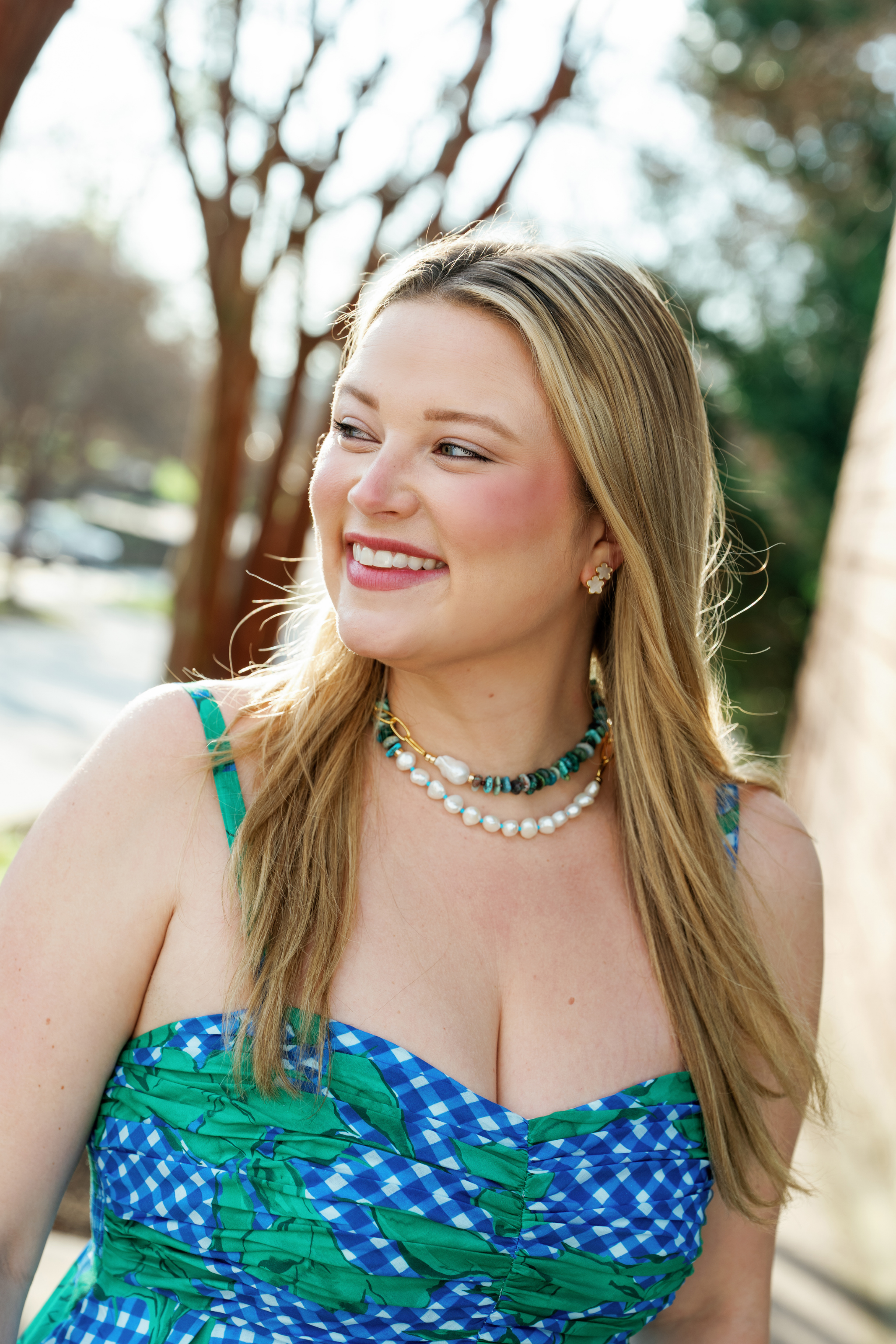 Spruce up your style in a long gold-plated brass chain necklace with a mix of freshwater pearls and chrysocolla beads dotted with faceted hessonite garnet accents. A gold-plated "figure 8" toggle closure keeps it all together. This strand can be worn long or doubled around for a collar effect.
