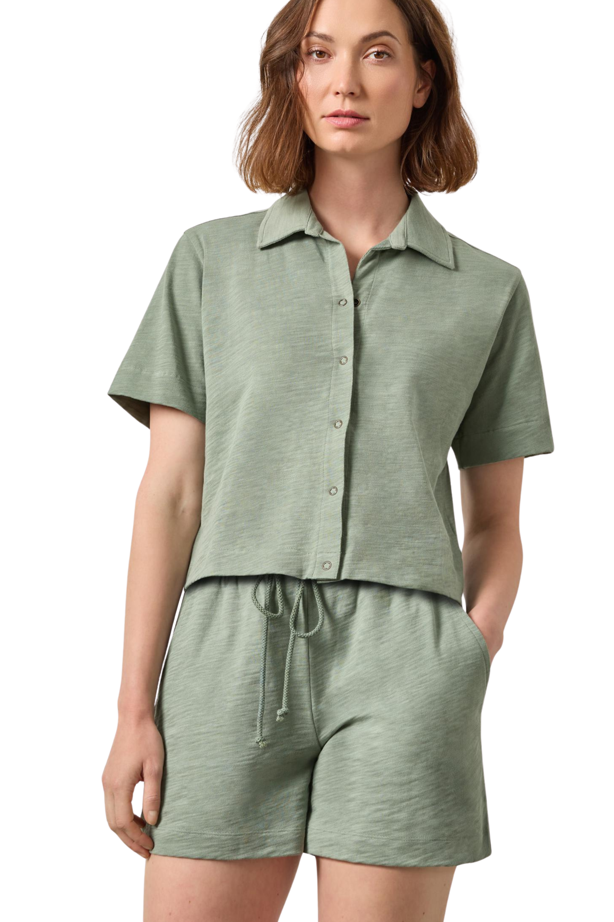 Style the Button Down Tee with matching shorts or denim for an elevated casual look.