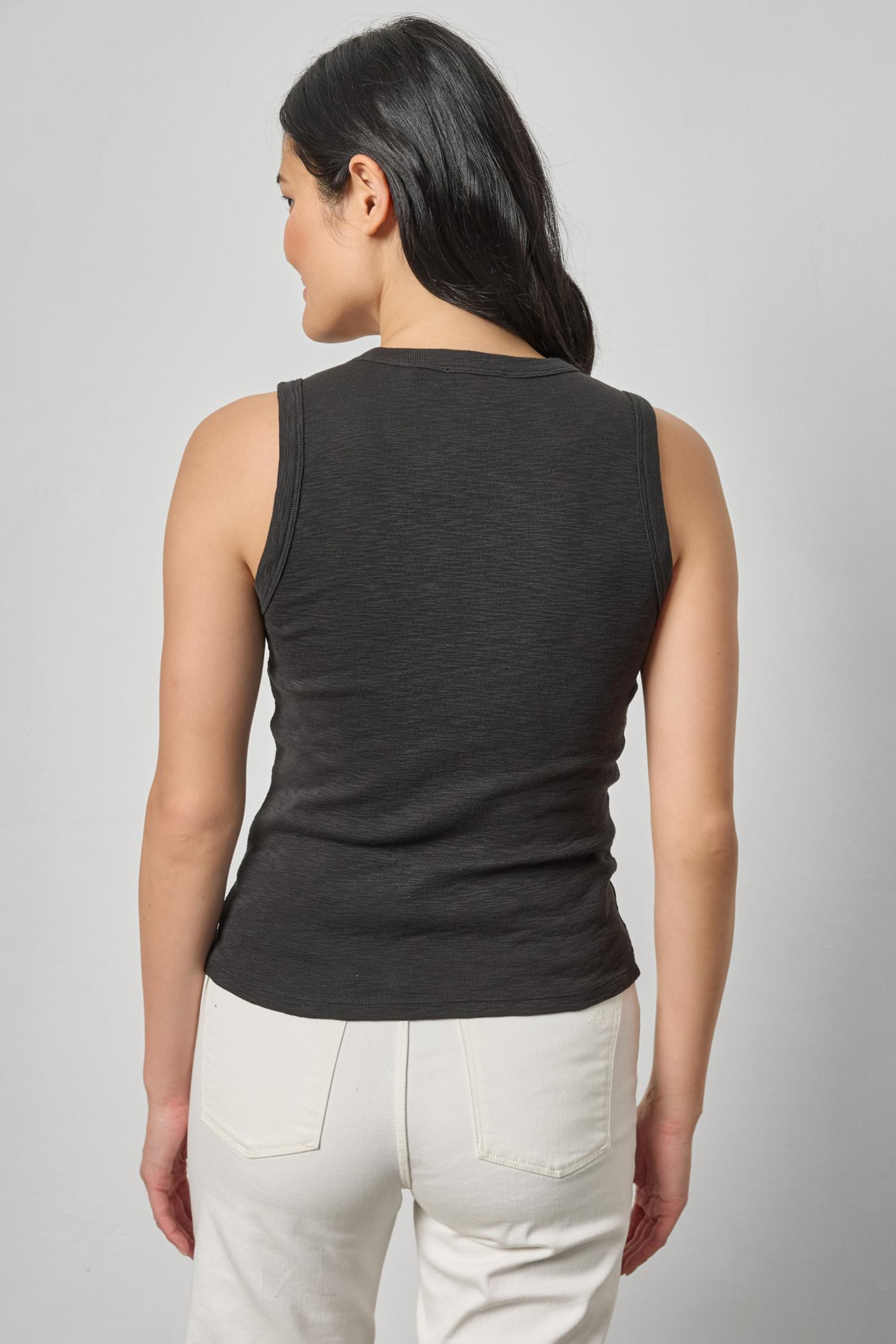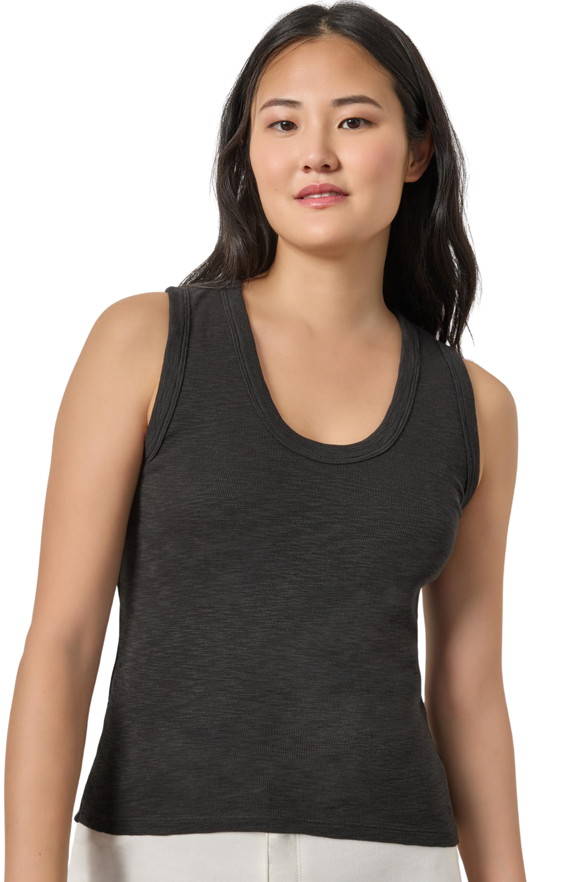 A true wardrobe essential, the Ribbed Slub Scoop Tank in Black from Lilla P is the perfect layering piece for effortless everyday style. Crafted from soft slub knit fabric, this black scoop neck tank offers a flattering fit and comfortable stretch that works beautifully under sweaters, jackets, or on its own.