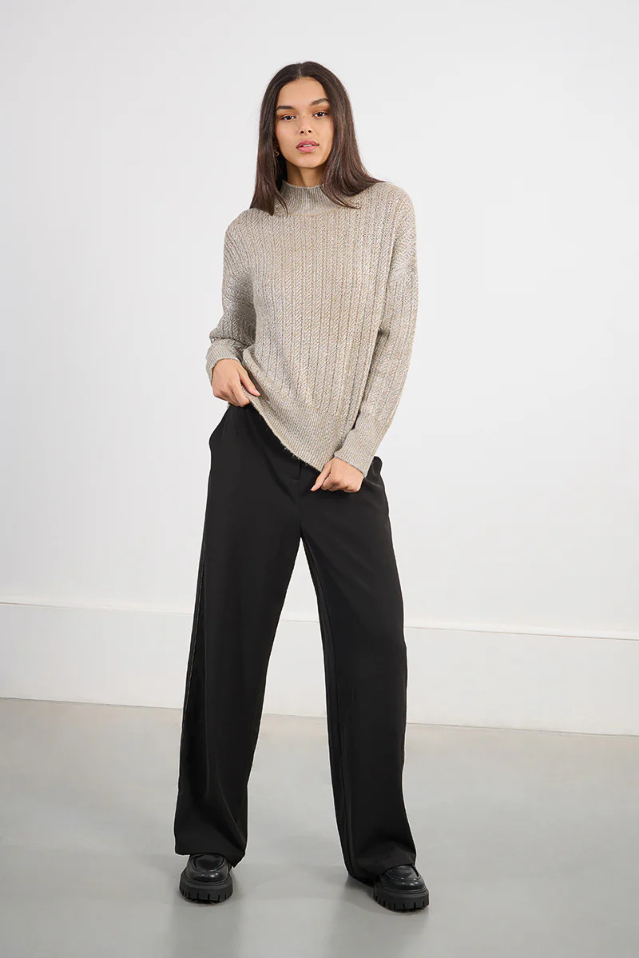 Shimmer Cable Knit Sweater, Beige