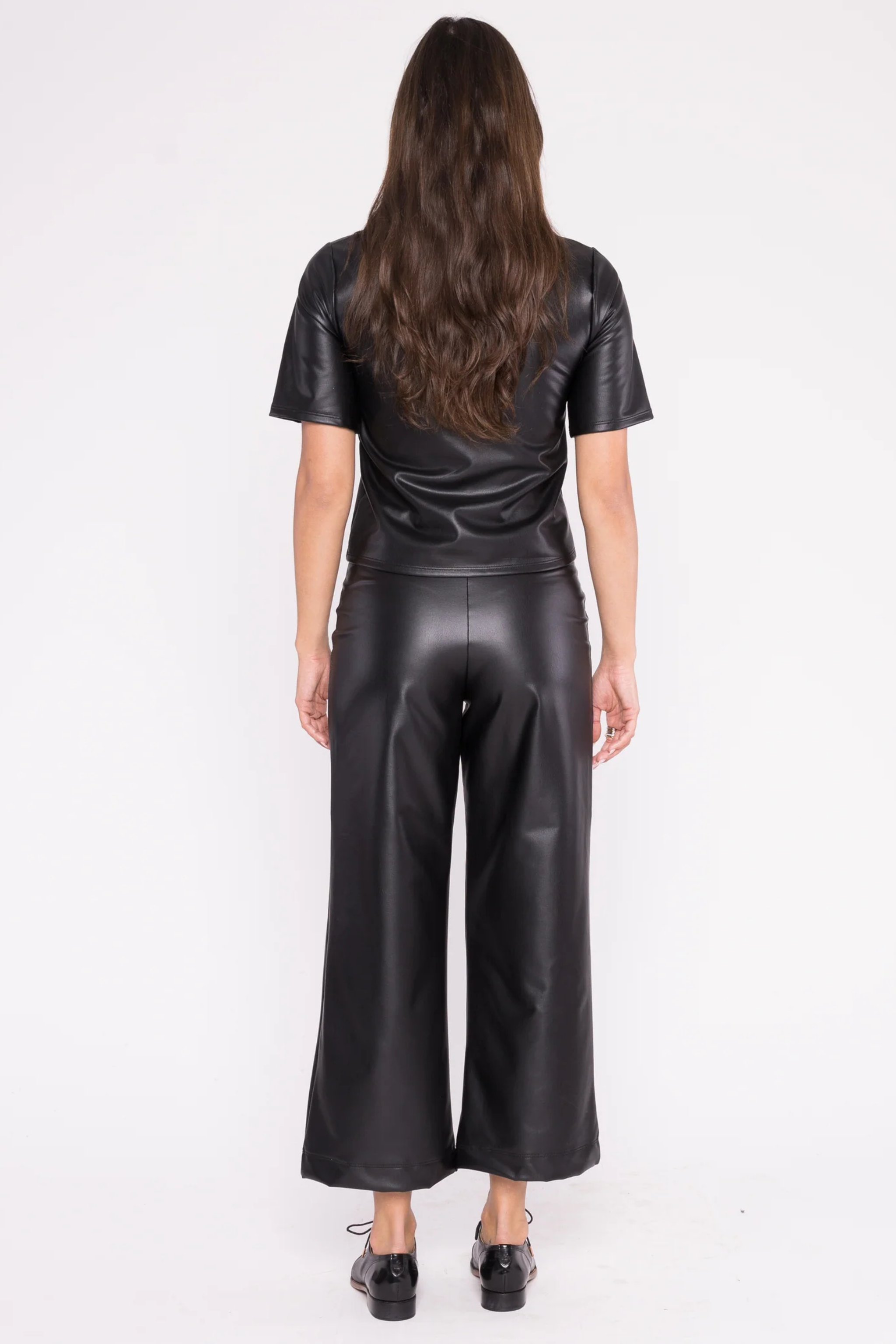 Ripley Rader's extended top now in vegan leather! The chic, extended sleeve, longer bodice length and square silhouette create the perfect top for any RR iconic pant. The vegan leather gives the appearance of real leather plus added comfort.