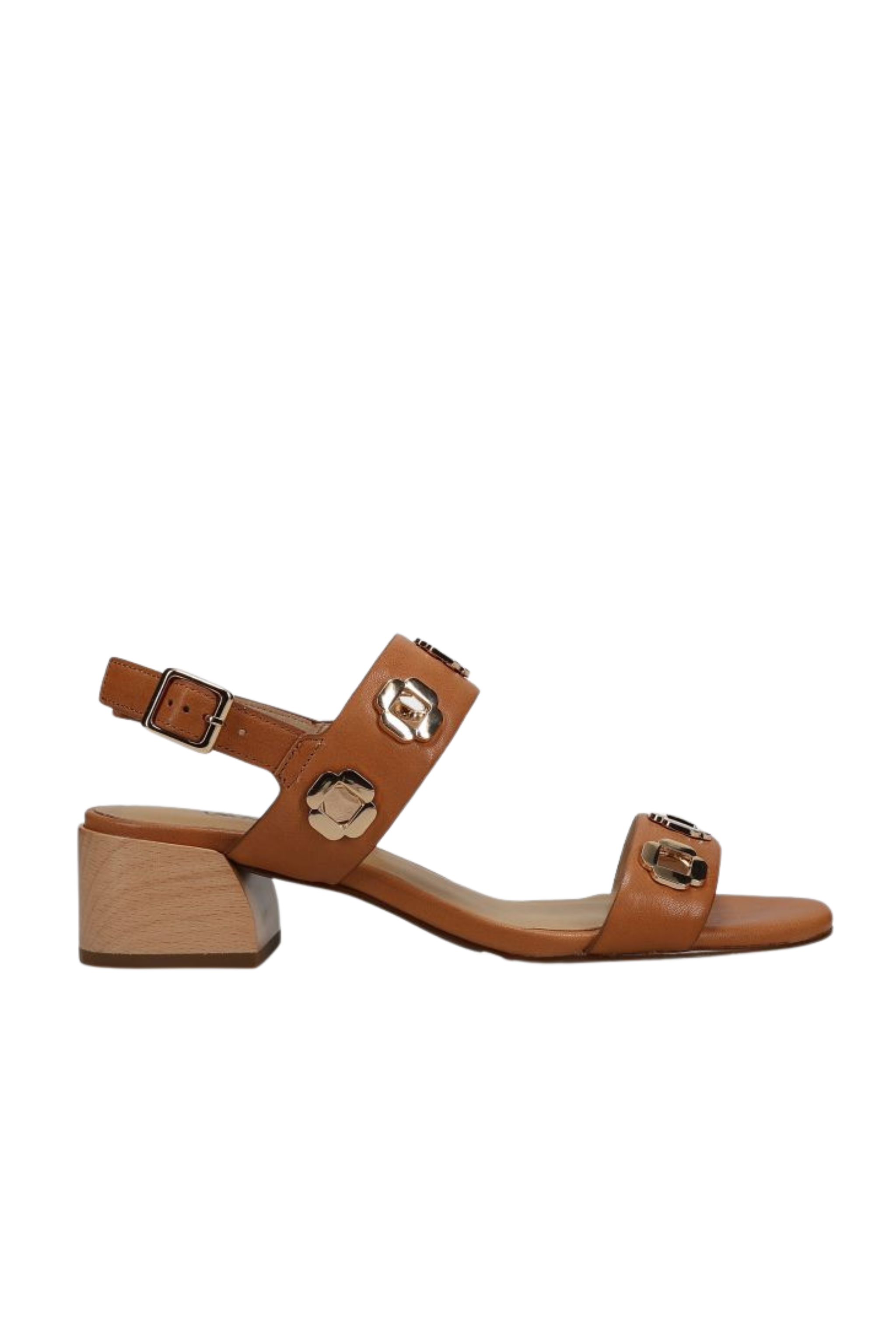 Meet the heel that does it all. Crafted in smooth almond leather, the Cris Sandal features perforated detailing and sculptural metal ornaments for a look that feels classic yet statement-making. A buckle strap with a hidden elastic insert ensures a comfortable, flexible fit, while the padded insole and 1.5-inch wood-look block heel provide just the right amount of lift without sacrificing wearability. Polished, versatile, and endlessly easy, this is an everyday heel you’ll reach for again and again.