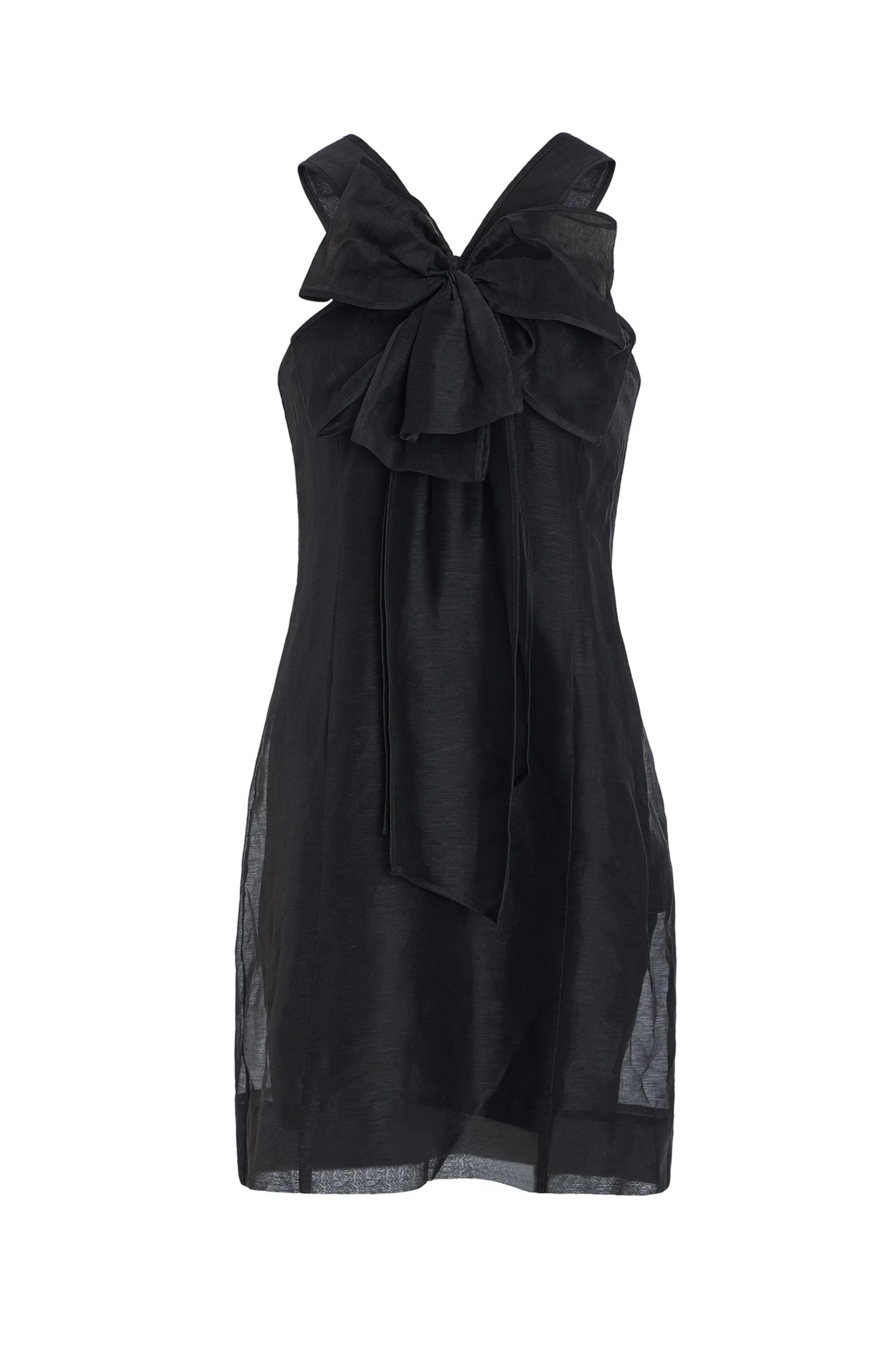 Inspired by Marie Oliver's Indira top, the Lila mini in classic black is a proper party dress with an oversized bow at the neck that adds playfulness and sophistication to a timeless LBD.
