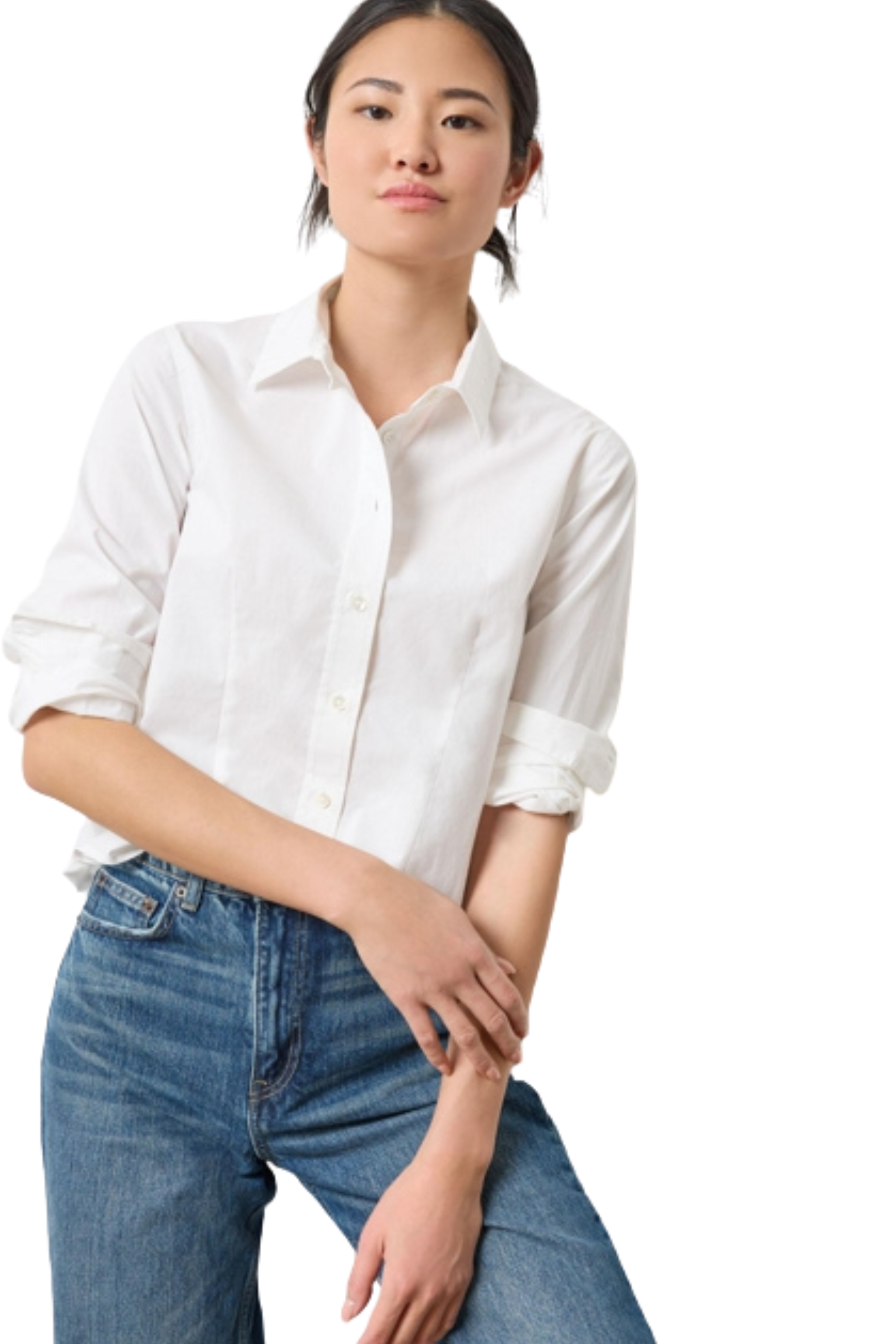 The Slim Fit Button Down in crisp poplin is designed for a more tailored fit, making it perfect for layering or wearing on its own. Seaming detail creates a feminine waist shape, giving this classic style a polished feel. Whether layered under a sweater or worn solo, this versatile shirt is a year-round essential.
