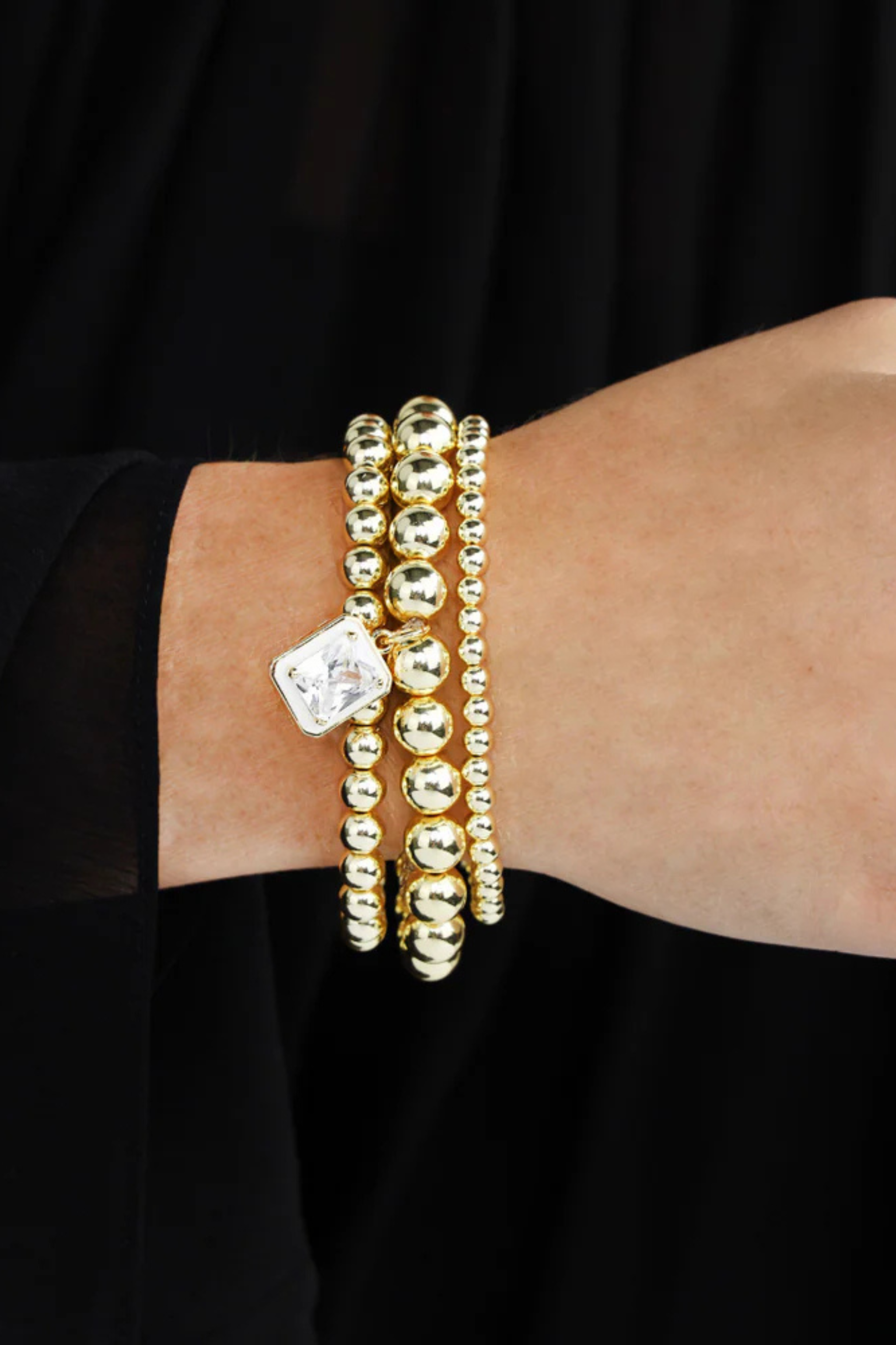 - Mindful Glamour Ritual: Pause. Breathe. Adorn your wrist with the Melinda Beaded Bracelet Set, feeling the soothing weight of the beads and the cool touch of the crystal against your skin. As you layer each strand, embrace the beauty of simplicity and the power of mindful adornment.