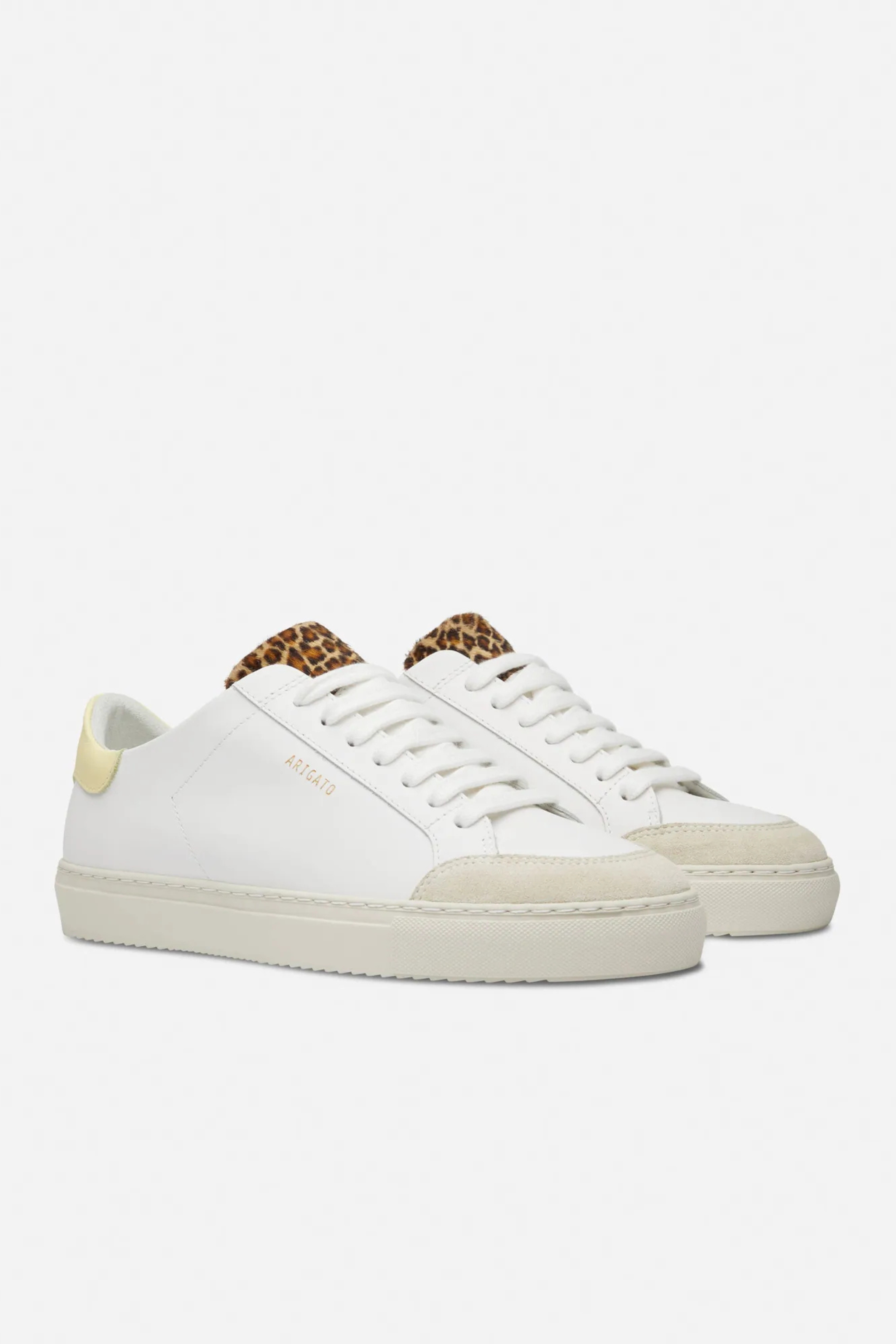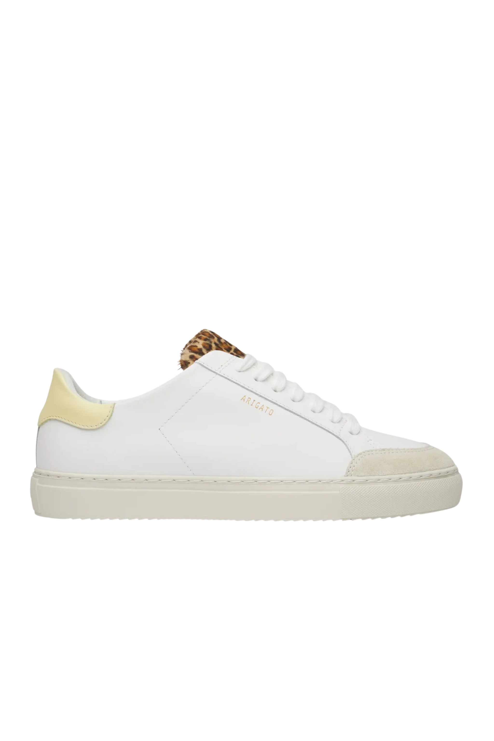 The Clean 90 Triple Sneakers in White/Light Yellow by Axel Arigato are a modern essential with a subtle statement twist. Crafted from smooth, premium leather, this minimalist low-top features a crisp white base accented with soft light yellow detailing for a fresh, refined look. The streamlined silhouette and tonal rubber sole create a polished, everyday feel, while signature gold branding adds a quiet touch of luxury. Effortless and endlessly versatile, these sneakers pair seamlessly with everything from denim and trousers to dresses and skirts.