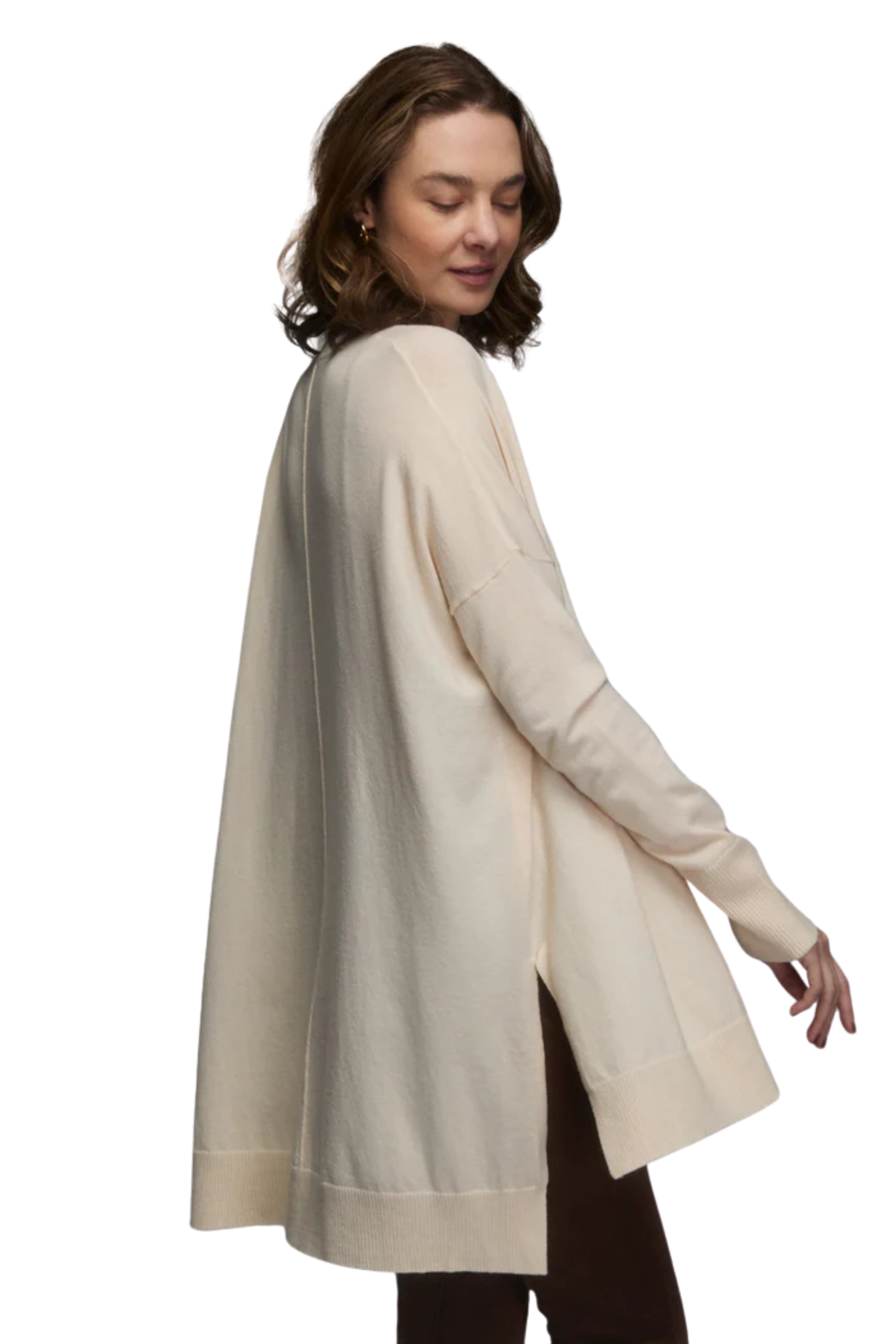 Oversized open 3/4 length cardigan with hi/lo side slits.