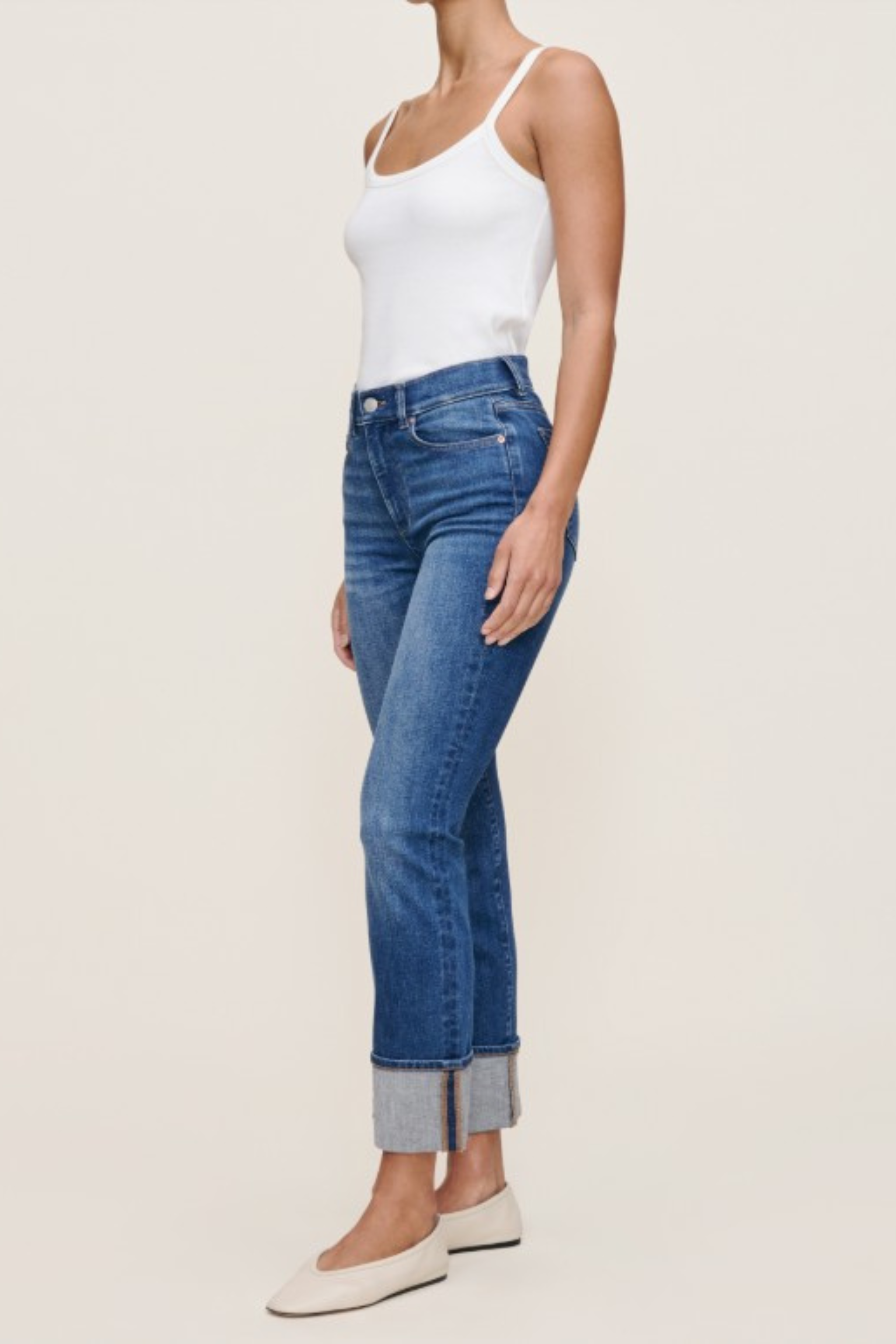 The Mara Straight Jean in Solace Cuffed from DL1961.