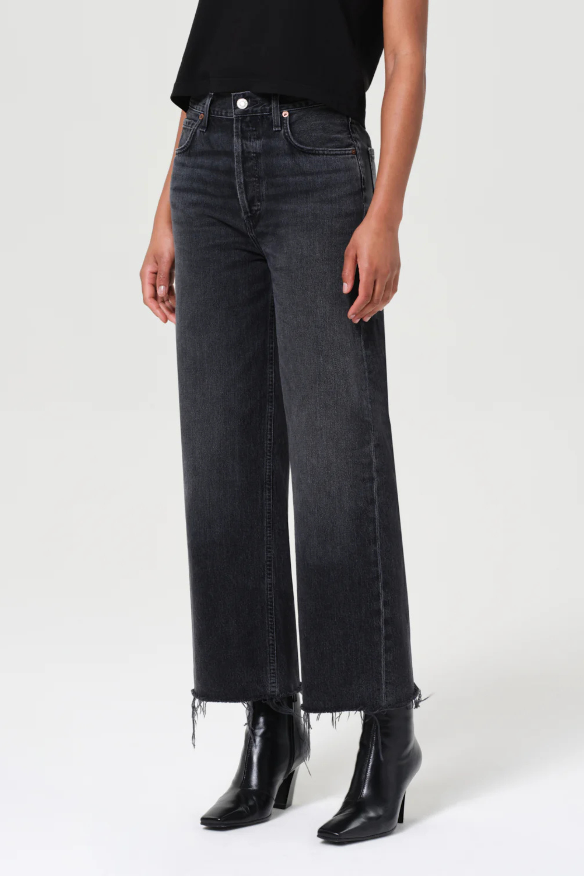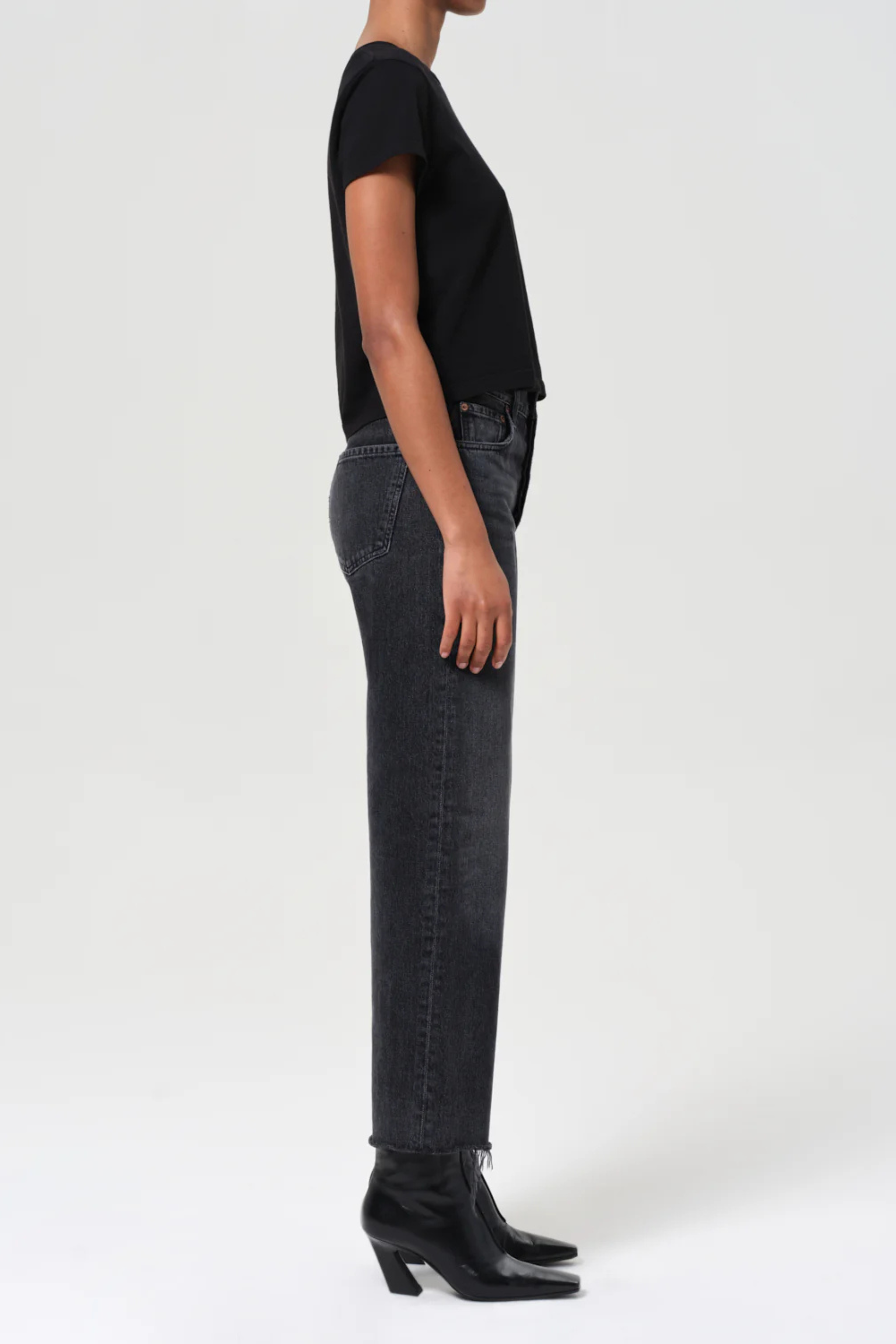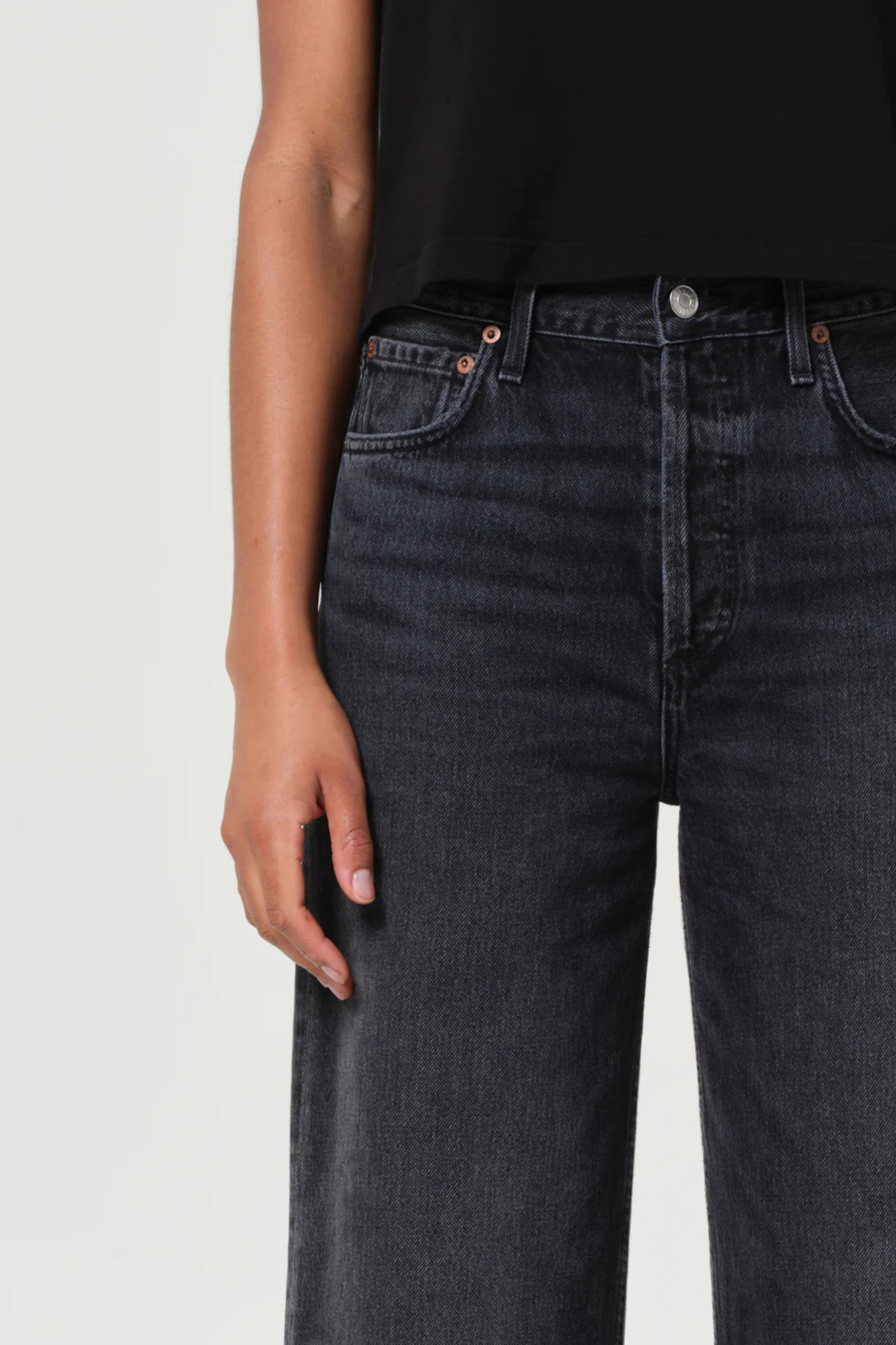 • Looks Like: Dark worn in, washed out black denim pant