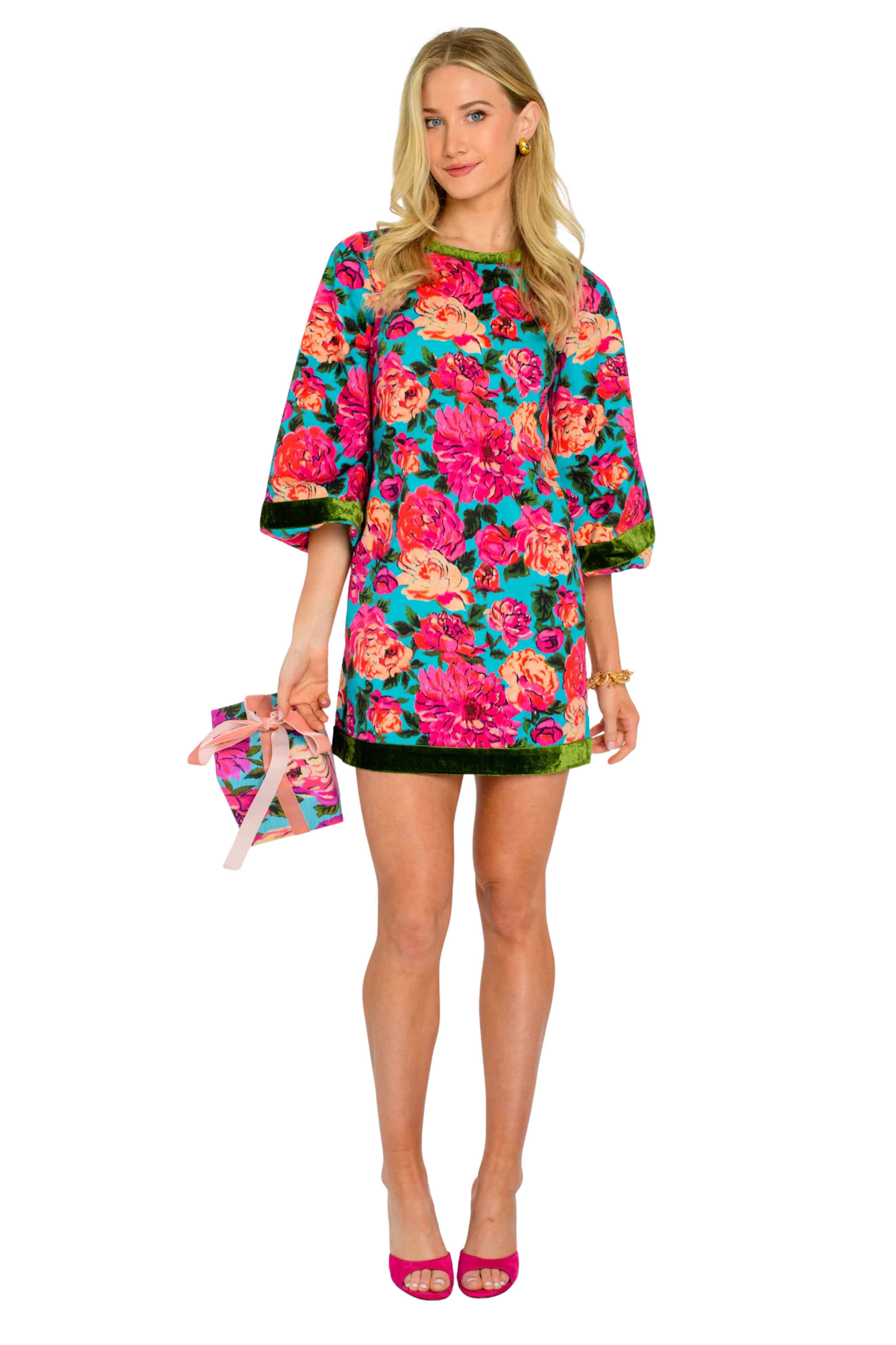 London is a seasonal shift dress, with bubble hem balloon sleeves and velvet trim. She is an easy option for all of your plans this Holiday season, whether you pair her with tights and boots or a pair of fun pink heels.