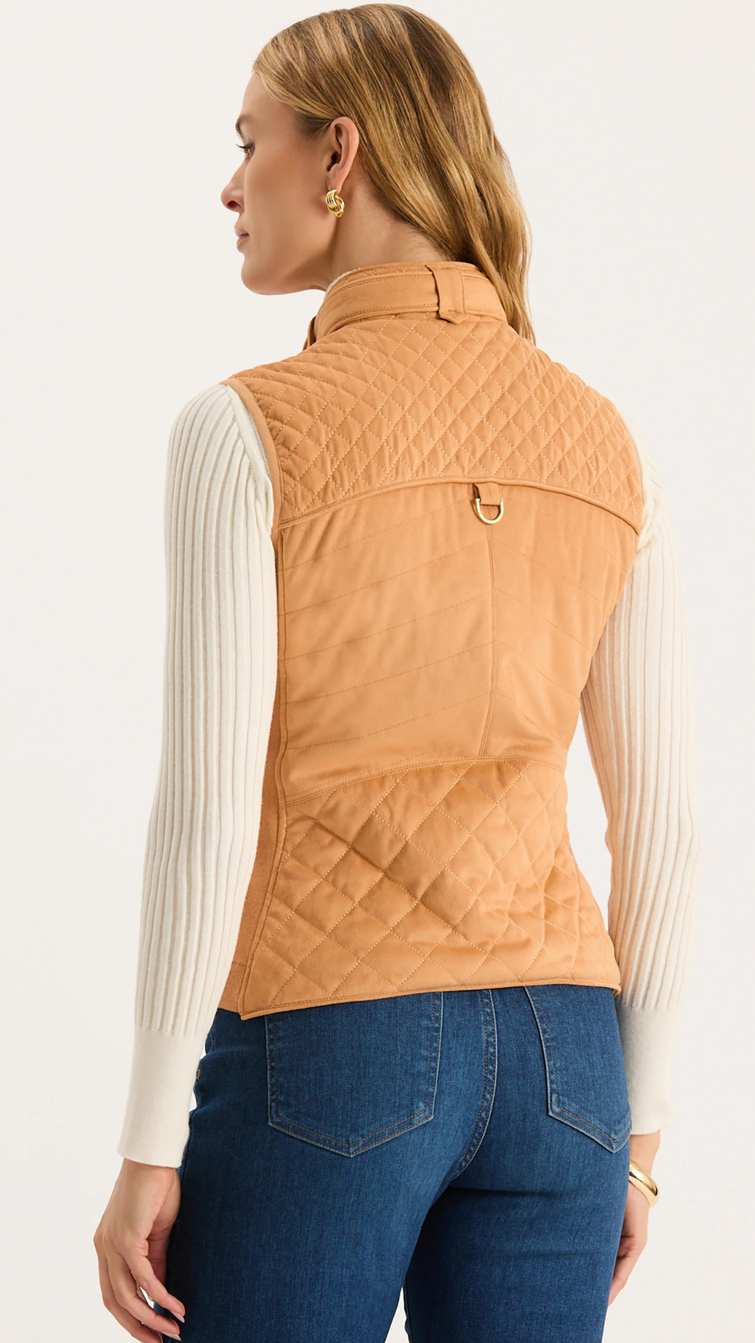 The Faux Suede Moto Vest in Golden Wheat from Tyler Boe.