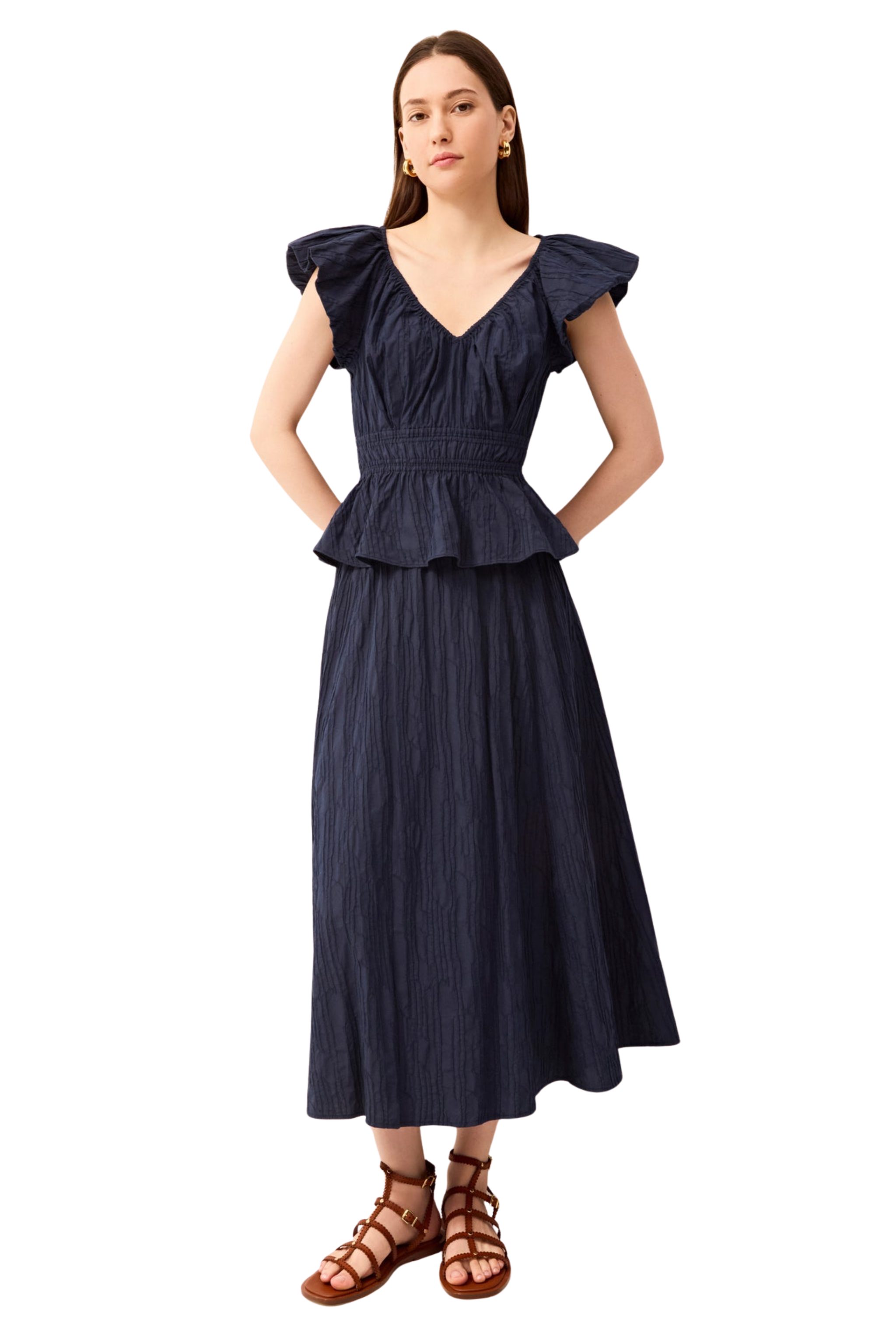 With a voluminous skirt, an elastic waistband, and pockets(!), Marie Oliver's new Sasha skirt is as fun to wear as it is flattering. This season, Sasha delivers classic elegance in a deep navy blue solid.