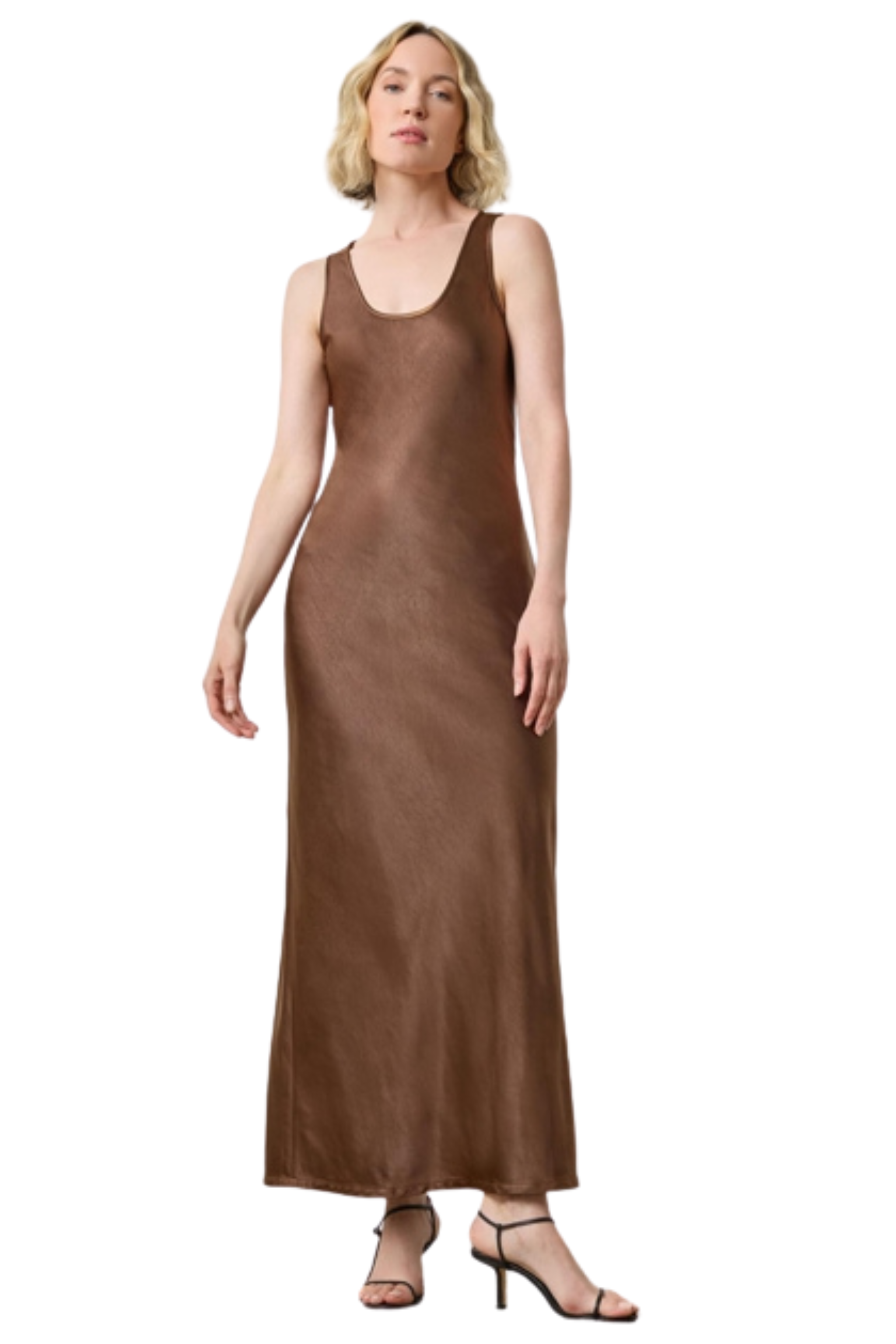 The Satin Bias Maxi Dress in satin twill has the perfect amount of weight, giving it a fluid drape that feels substantial without being too heavy. The fabric's matte sheen adds a modern touch, making this dress perfect for both elevated occasions and everyday styling. Cut on the bias for a flattering fit, this maxi dress has refined French seaming along the neckline and armholes, ensuring a clean, polished look. Wear it on its own, or layer it under a sweater for added versatility.