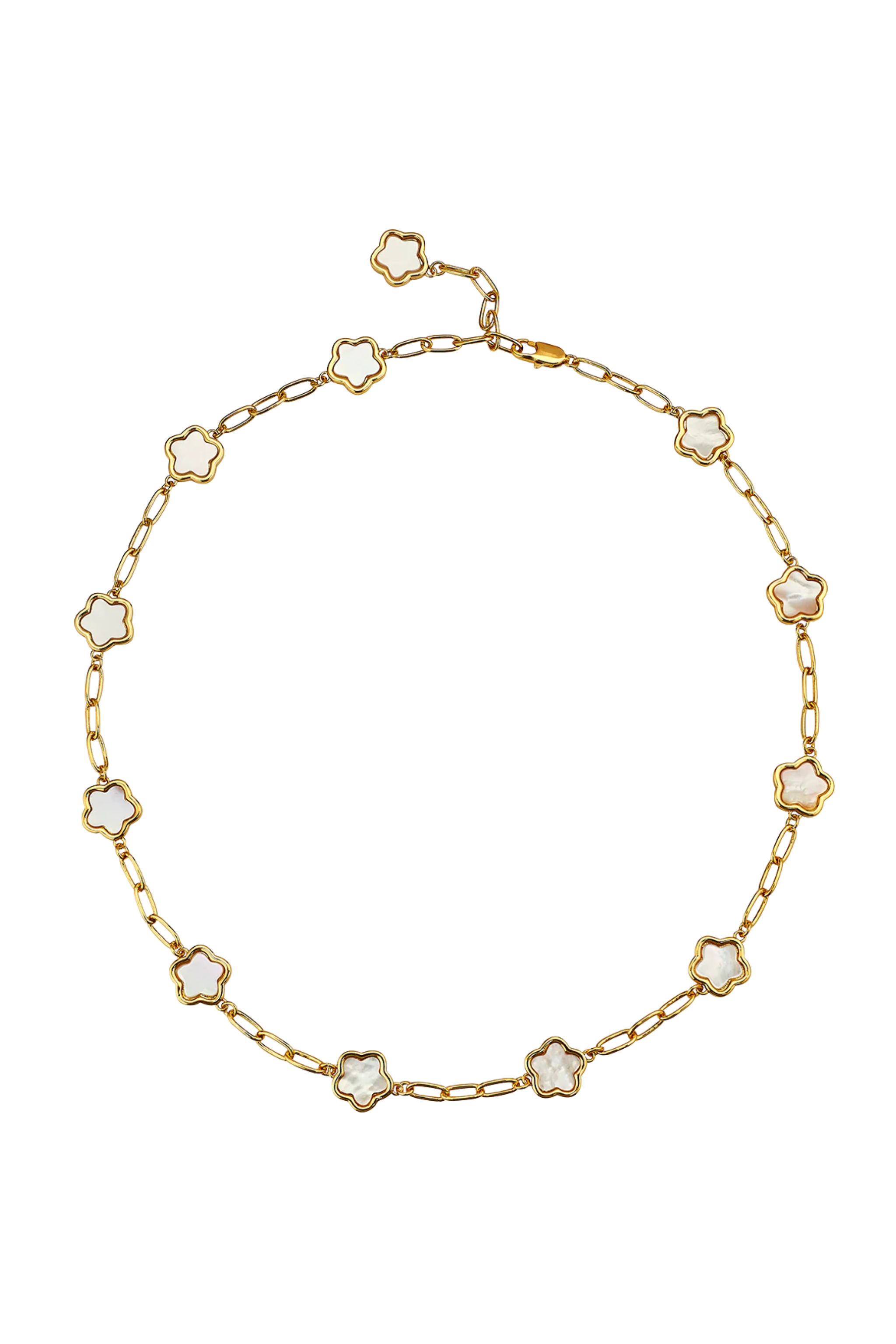 14k gold dipped mother of pearl Lilia station necklace. 16.75" length, adjustable shorter.