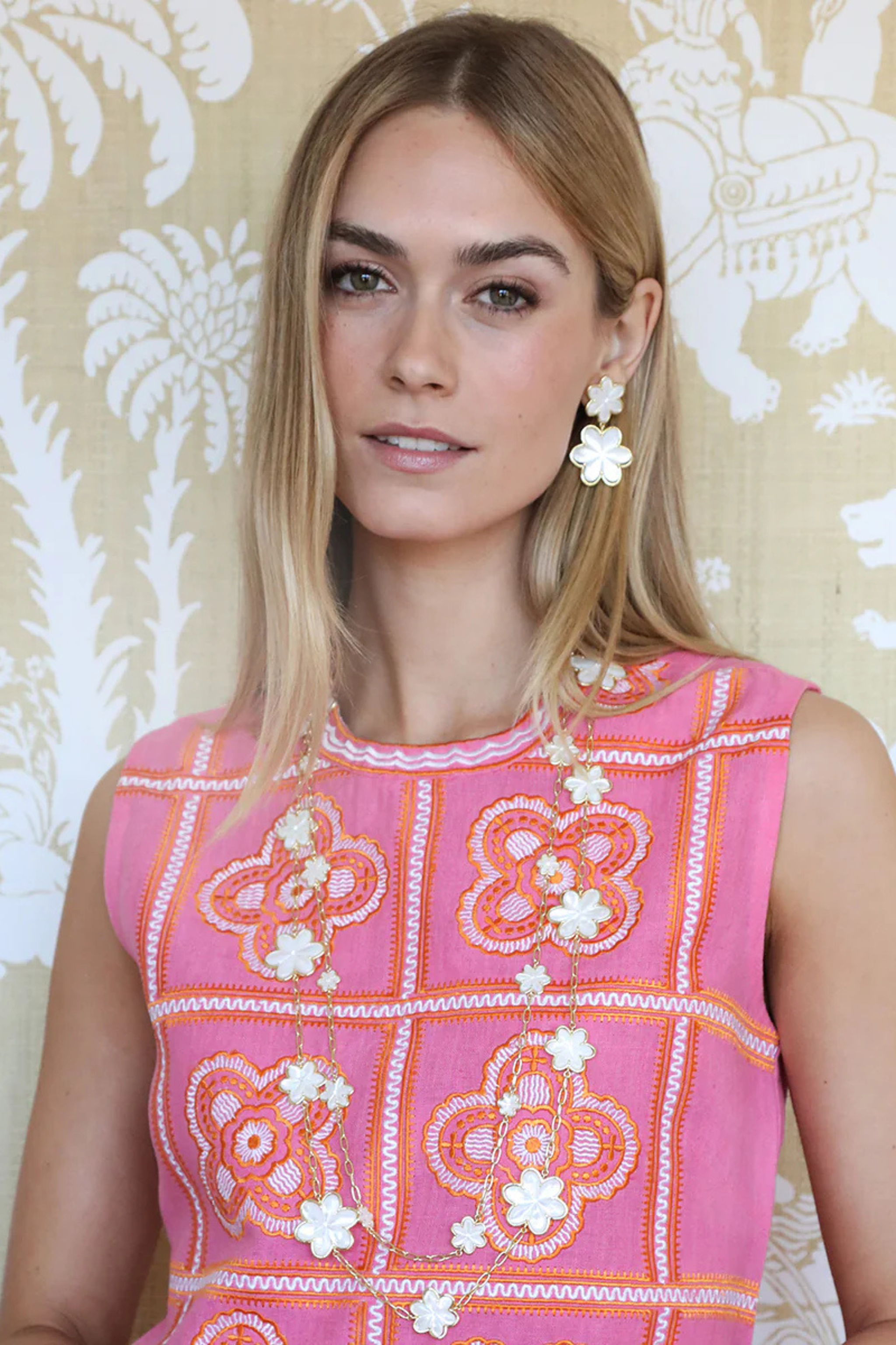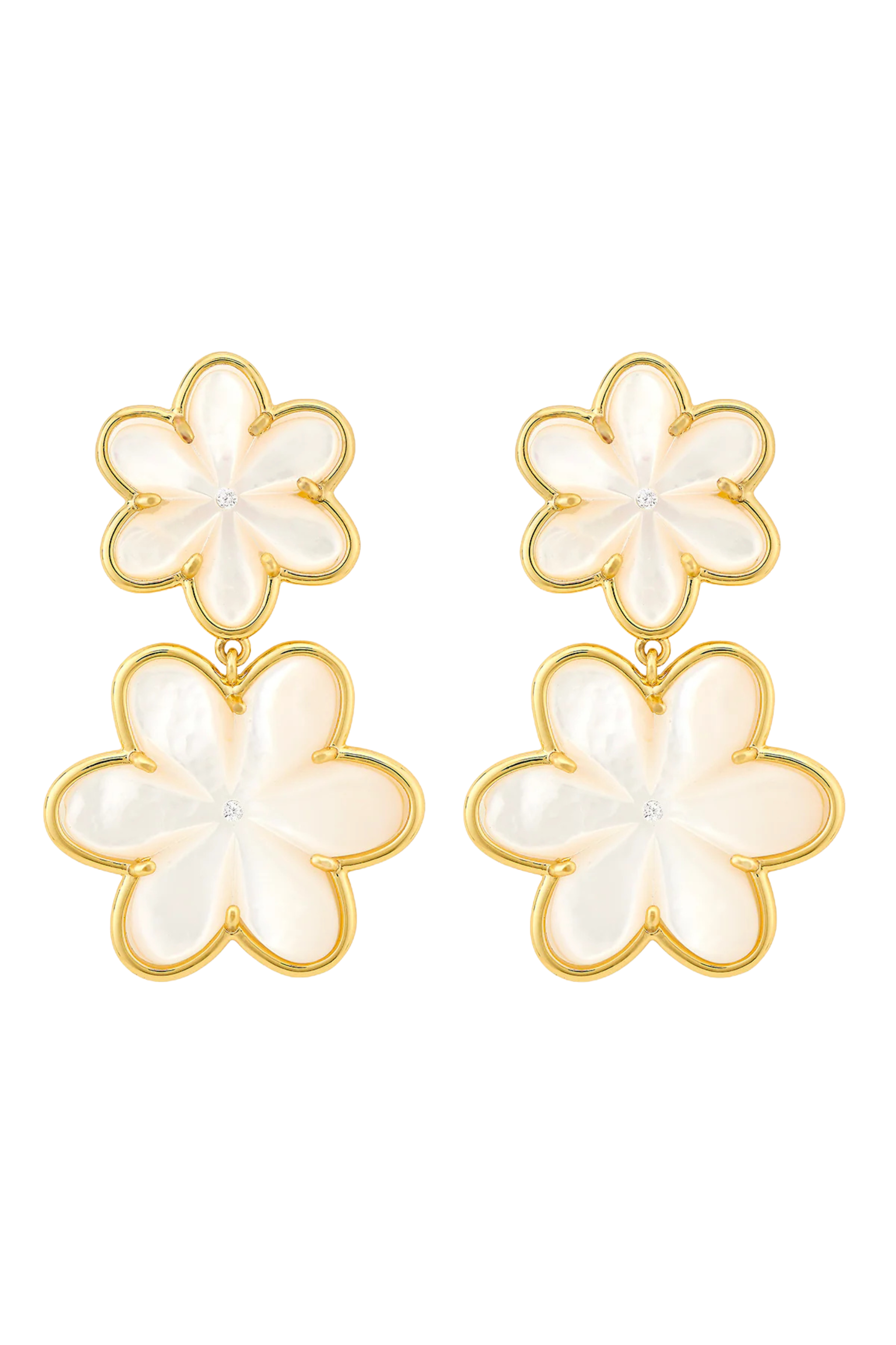 14k gold dipped Eadie Double earring with mother of pearl flowers and cz