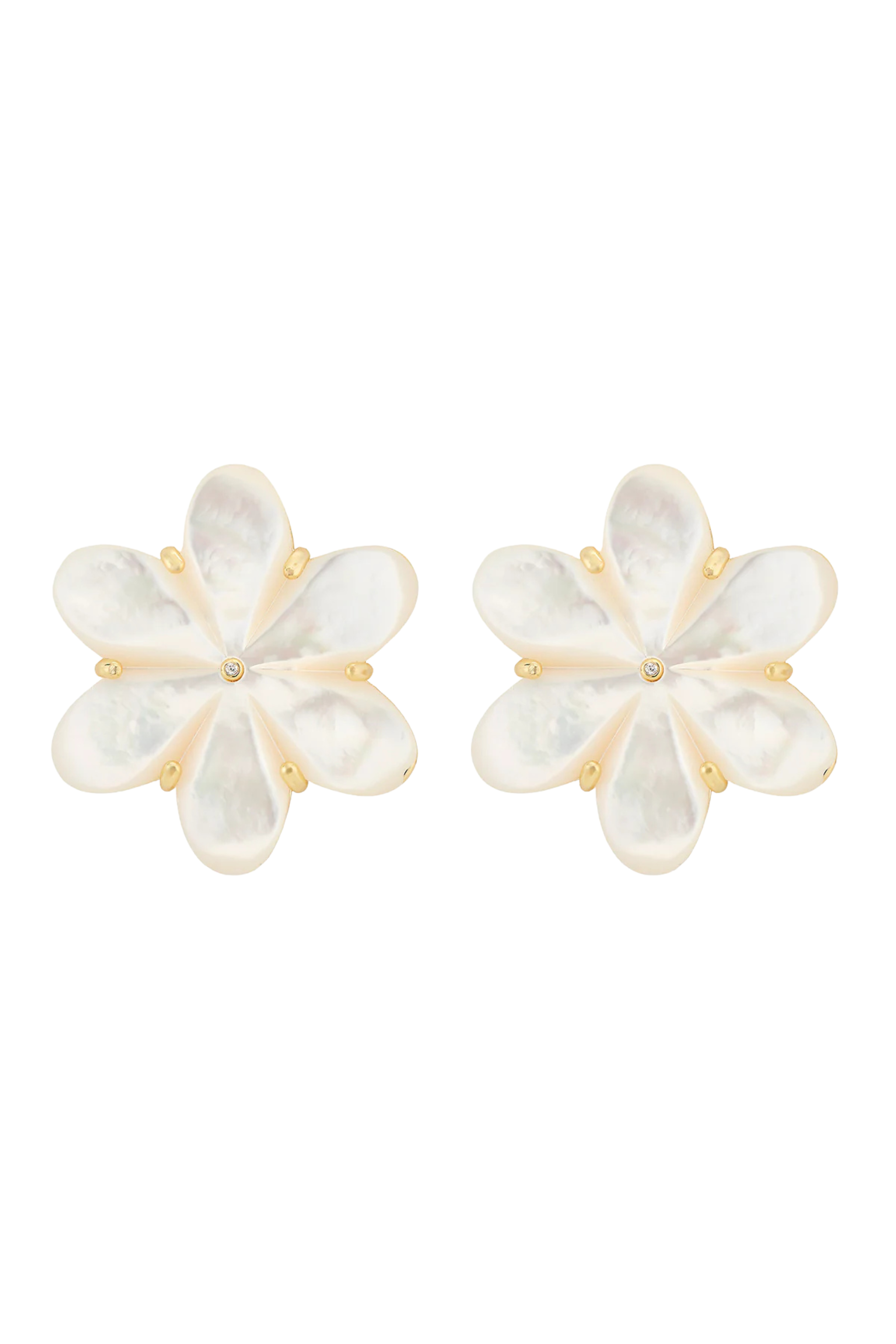 14k gold dipped Eadie oversized stud with mother of pearl flower and cz center.