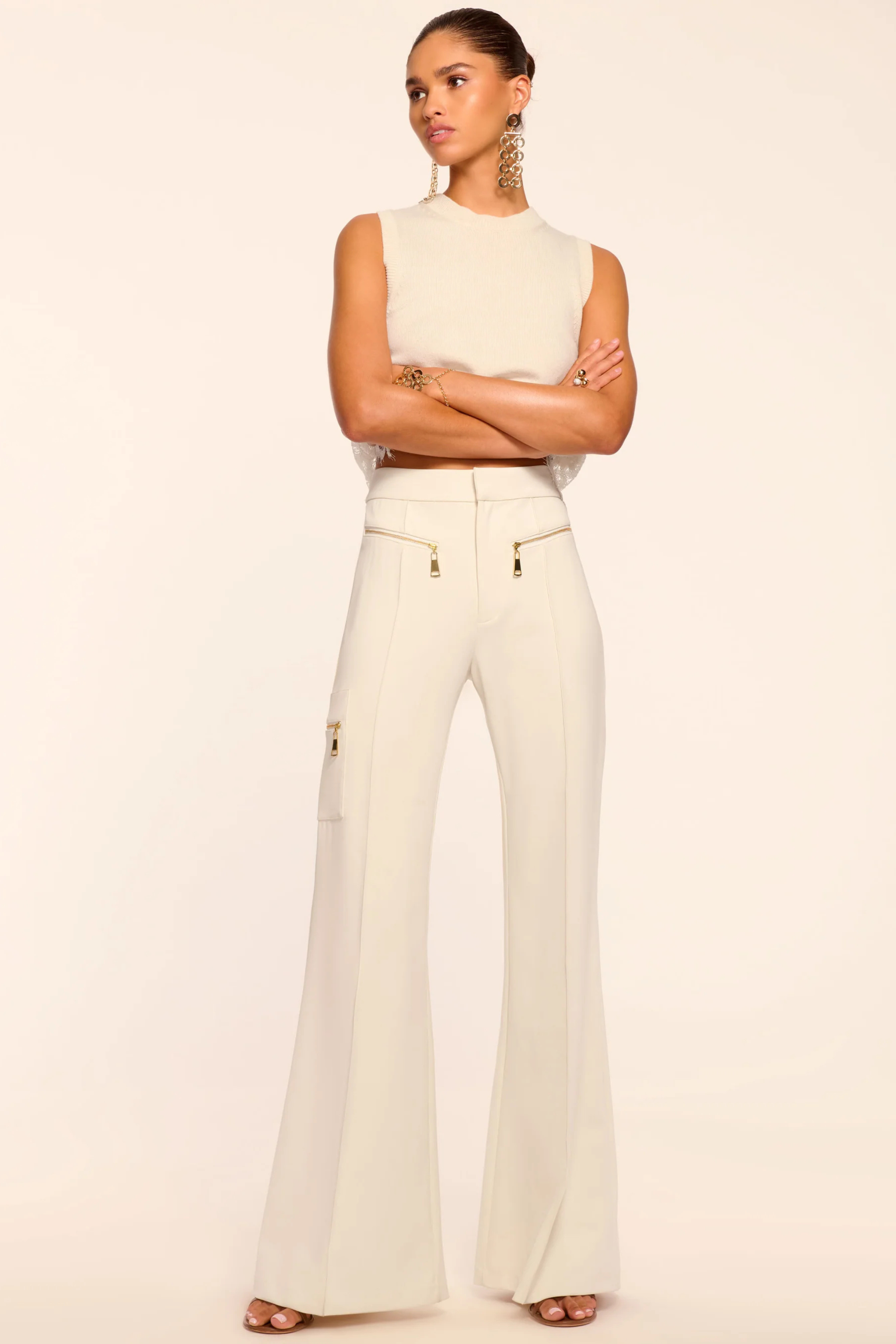 Step out in the Emory, a sculpting, versatile trouser with a retro-inspired zipper detail. Pair this sculpting, high rise wide leg pant with a blazer for the office or a slouchy sweater for date night.