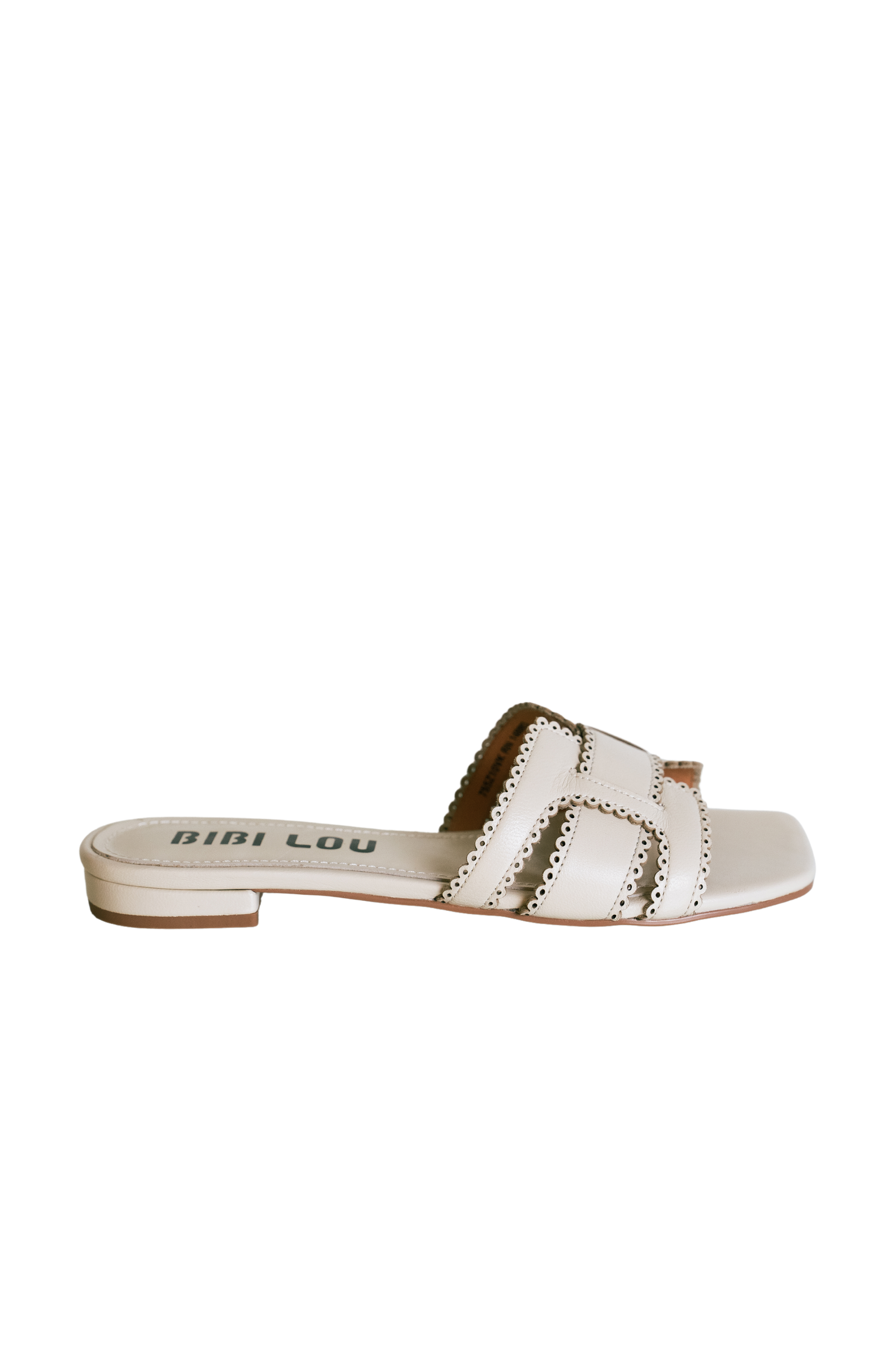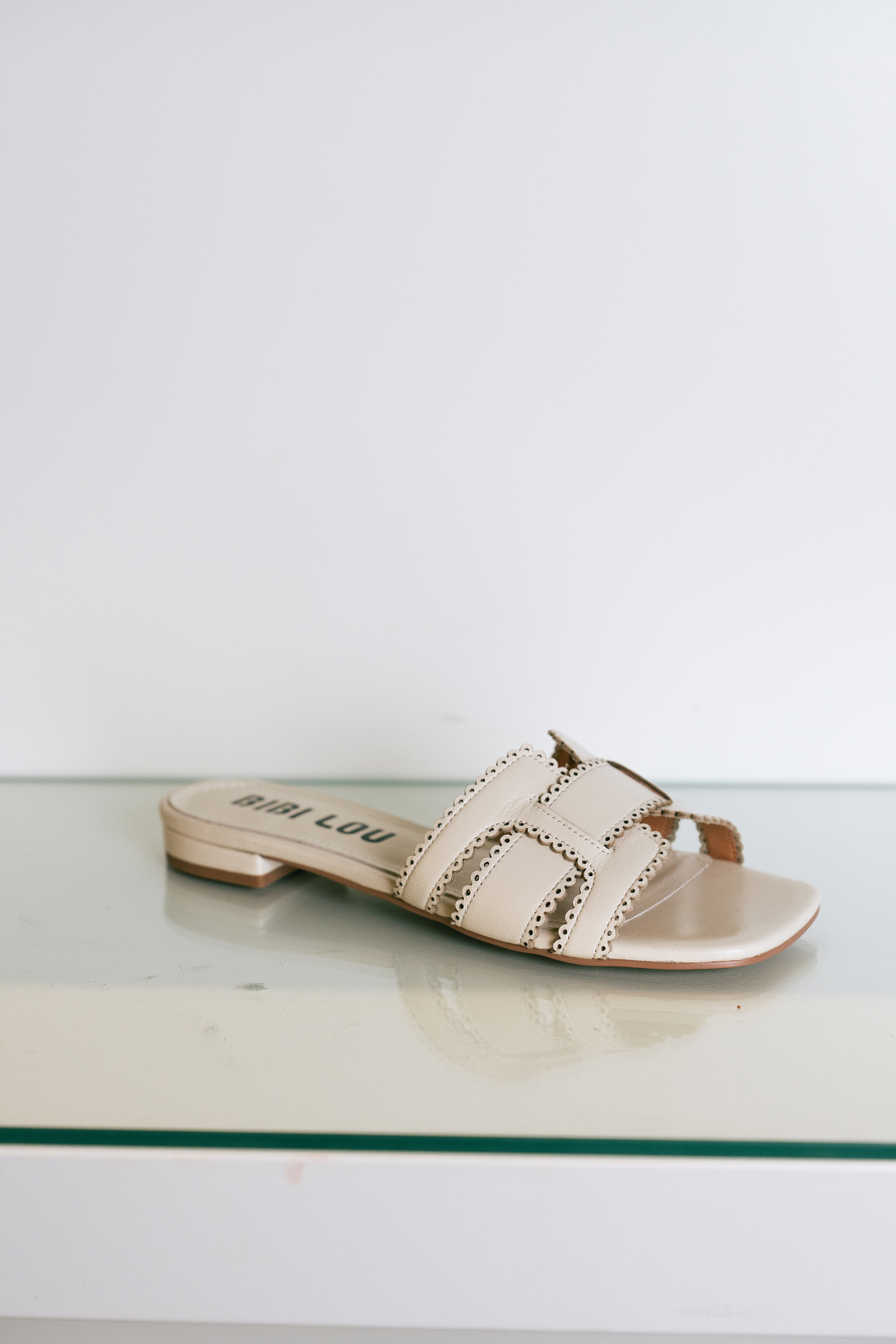 Fresh, feminine, and effortlessly polished, the Eyelet Sandal in White from Bibi Lou is the perfect warm weather staple. Designed with delicate eyelet detailing and soft leather straps, this chic flat sandal offers a refined yet relaxed feel that pairs beautifully with everything from breezy summer dresses to casual denim looks. Whether you are heading to brunch, strolling through town, or packing for vacation, this elegant slide adds an easy touch of sophistication to any outfit.