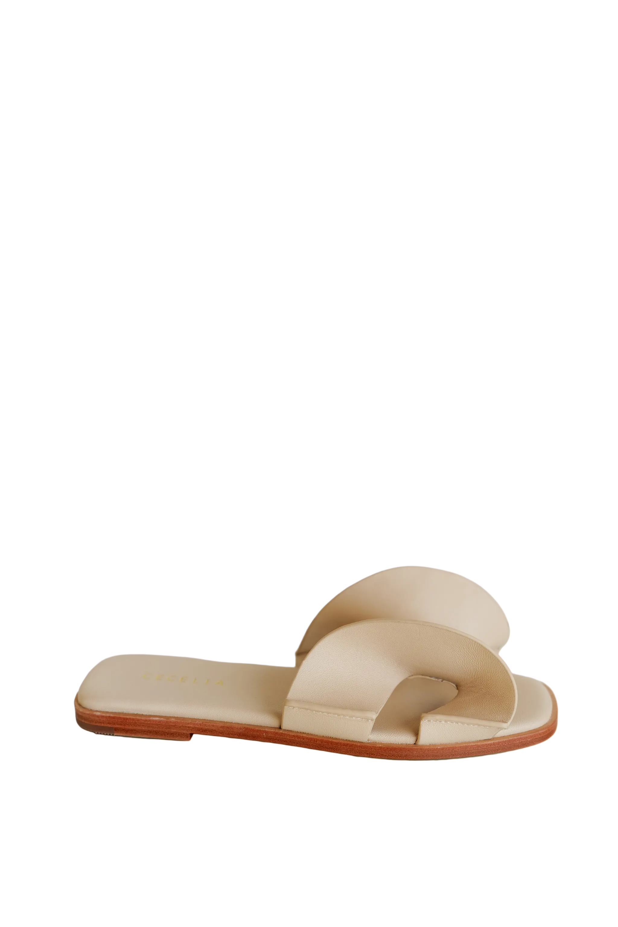 The Wendy Sandal in Natural from Cecelia New York is the definition of modern minimalism with a sculptural twist. Crafted in smooth natural leather, this slide features a bold curved strap design that feels architectural yet effortless. The softly padded upper and flat silhouette offer all-day comfort, while the rich wood-tone sole adds a subtle contrast that elevates the neutral hue. Chic, understated, and endlessly versatile, the Wendy pairs just as easily with crisp white denim and a linen blouse as it does with breezy dresses and tailored shorts. It’s the kind of polished everyday sandal you’ll reach for all season long.