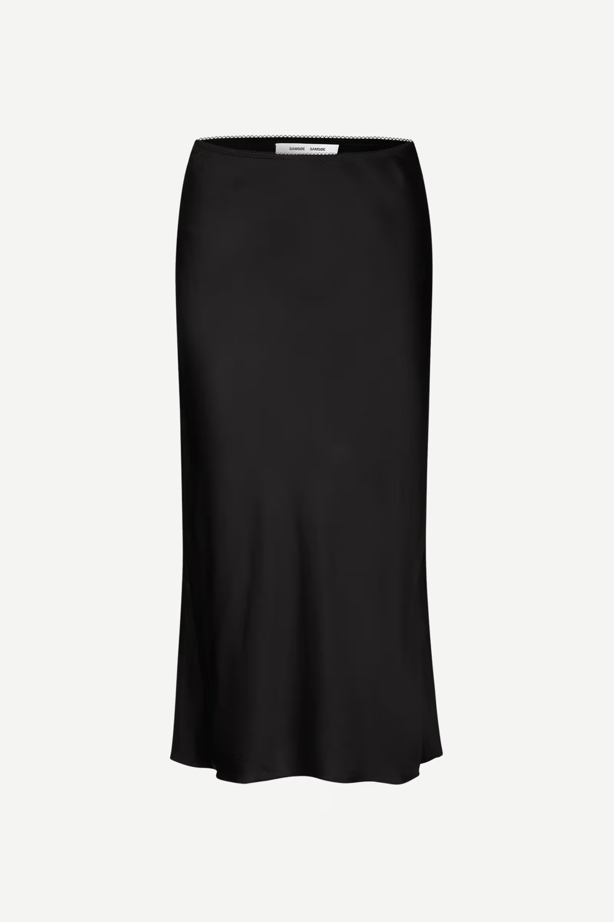 Satin midi skirt with a slim fit. Elasticated waistband with scalloped edges. Main material made from a blend with LENZING™ ECOVERO™ Viscose. This product contains LENZING™ ECOVERO™ Viscose.
