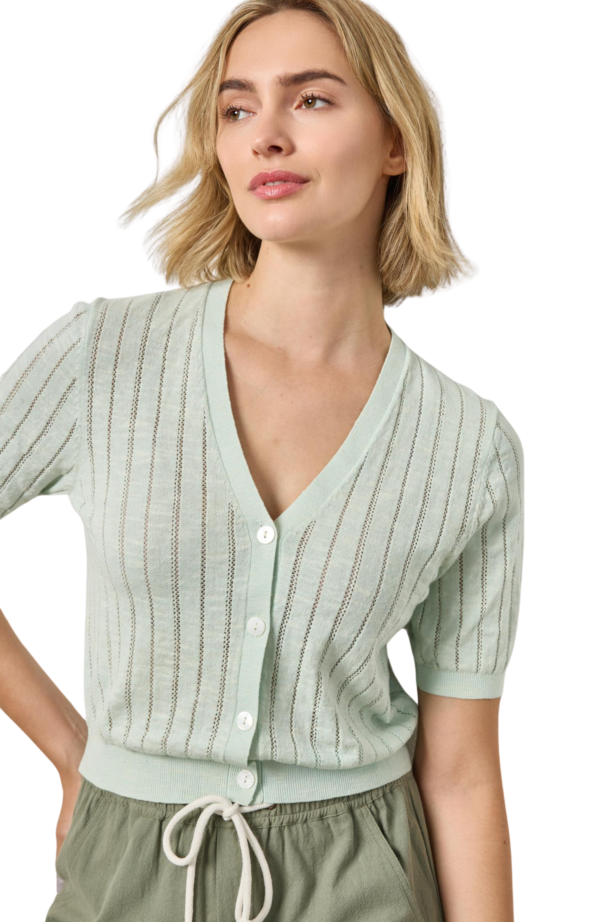 Lightweight and beautifully textured, the Open Stitch V-Neck Cardigan in Blue Mist from Lilla P is the perfect layering piece for spring and summer. Featuring delicate open stitch detailing and a soft pastel hue, this airy v-neck cardigan adds a touch of elegance to casual outfits.