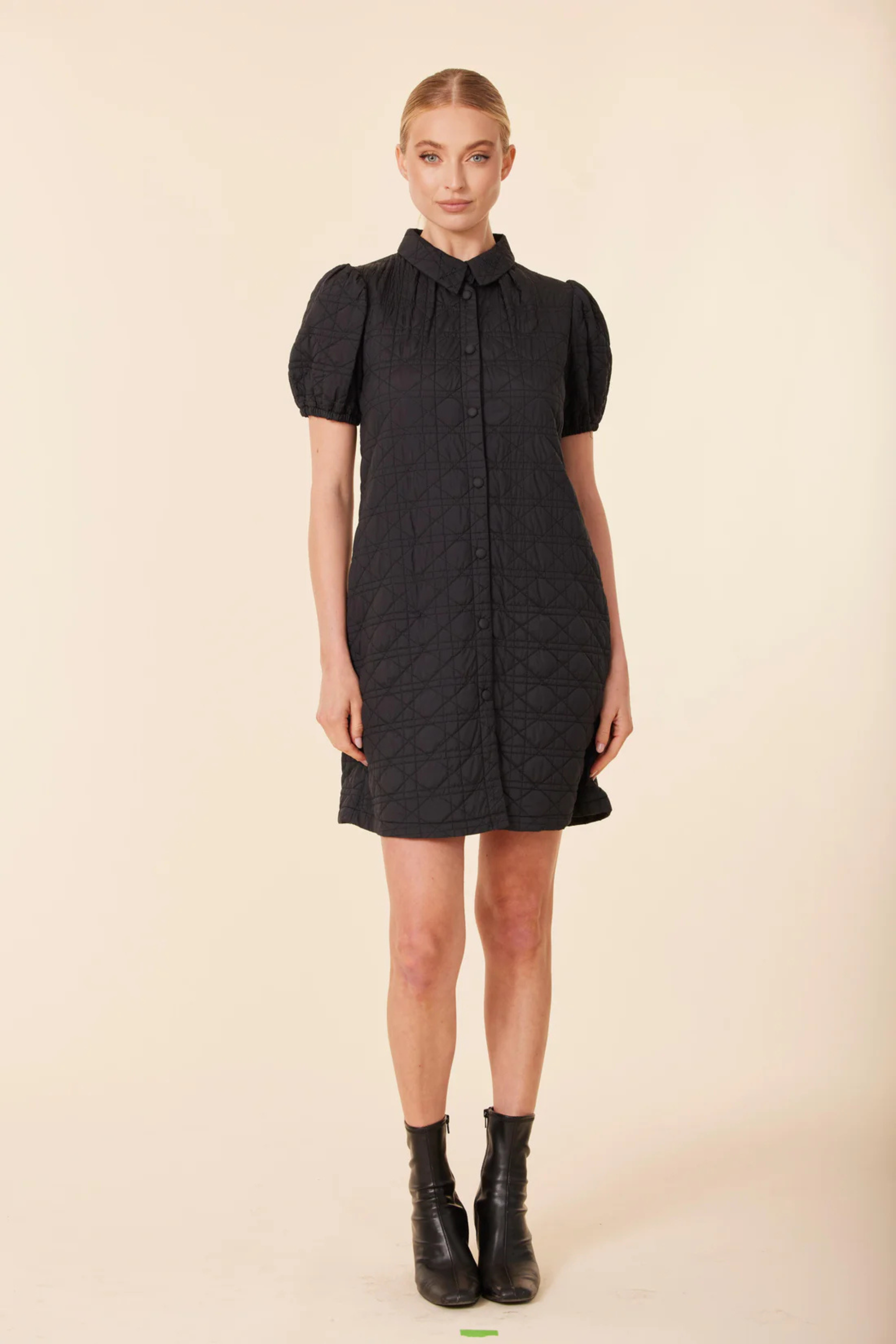 Meet the perfect addition to your Fall wardrobe - our quilted dress featuring stylish puff sleeves, a classic collared neckline, and a flattering A-line silhouette. Crafted with cozy quilted fabric, this versatile fall dress offers both comfort and style. Perfect for layering with boots or tights on cooler days. Side pockets add functionality, while the button-front closure makes it easy to wear from day to night. A must-have women’s fall fashion piece for effortless everyday elegance.