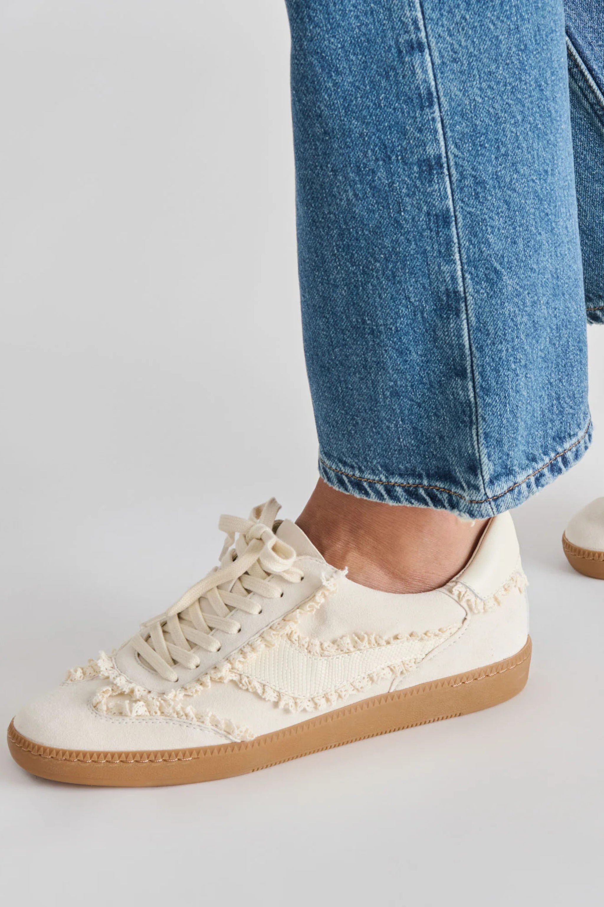 Effortlessly cool with a touch of texture, the Notice Lace Sneaker in Ivory Suede from Dolce Vita is the perfect blend of laid-back and elevated. Designed in soft ivory suede with subtle frayed detailing, this everyday sneaker brings a fresh, modern feel to your casual wardrobe. The gum sole adds a hint of contrast while keeping things grounded and versatile.