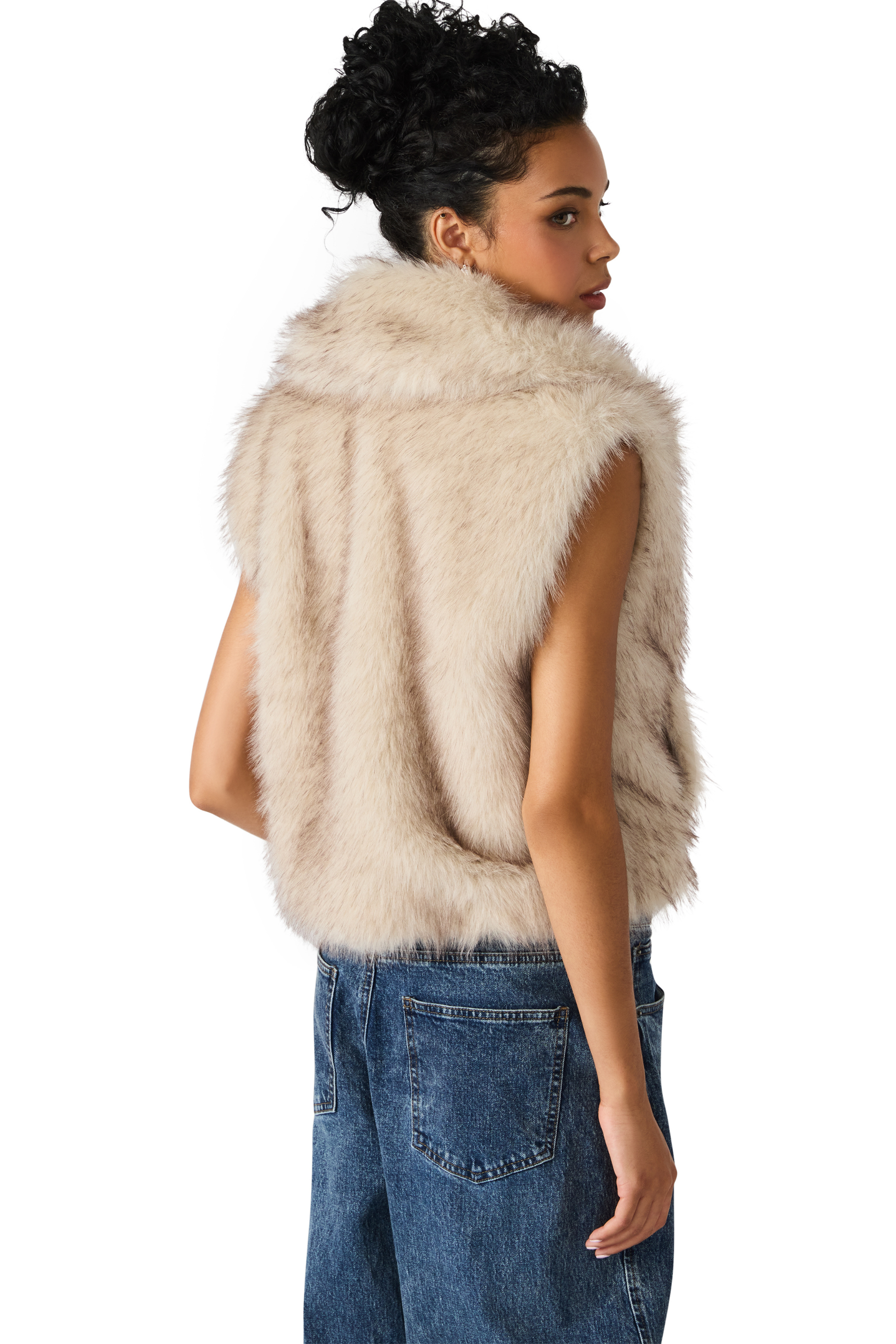 Elevate your layering game with the SAFIRA VEST NATURAL, crafted from luxuriously soft faux fur for warmth and style. Its structured collared neckline offers a polished silhouette, perfect for transitioning seamlessly from casual to refined looks. This vest adds texture and sophistication while providing comfy comfort, making it an essential piece for chic, cold-weather outfits.