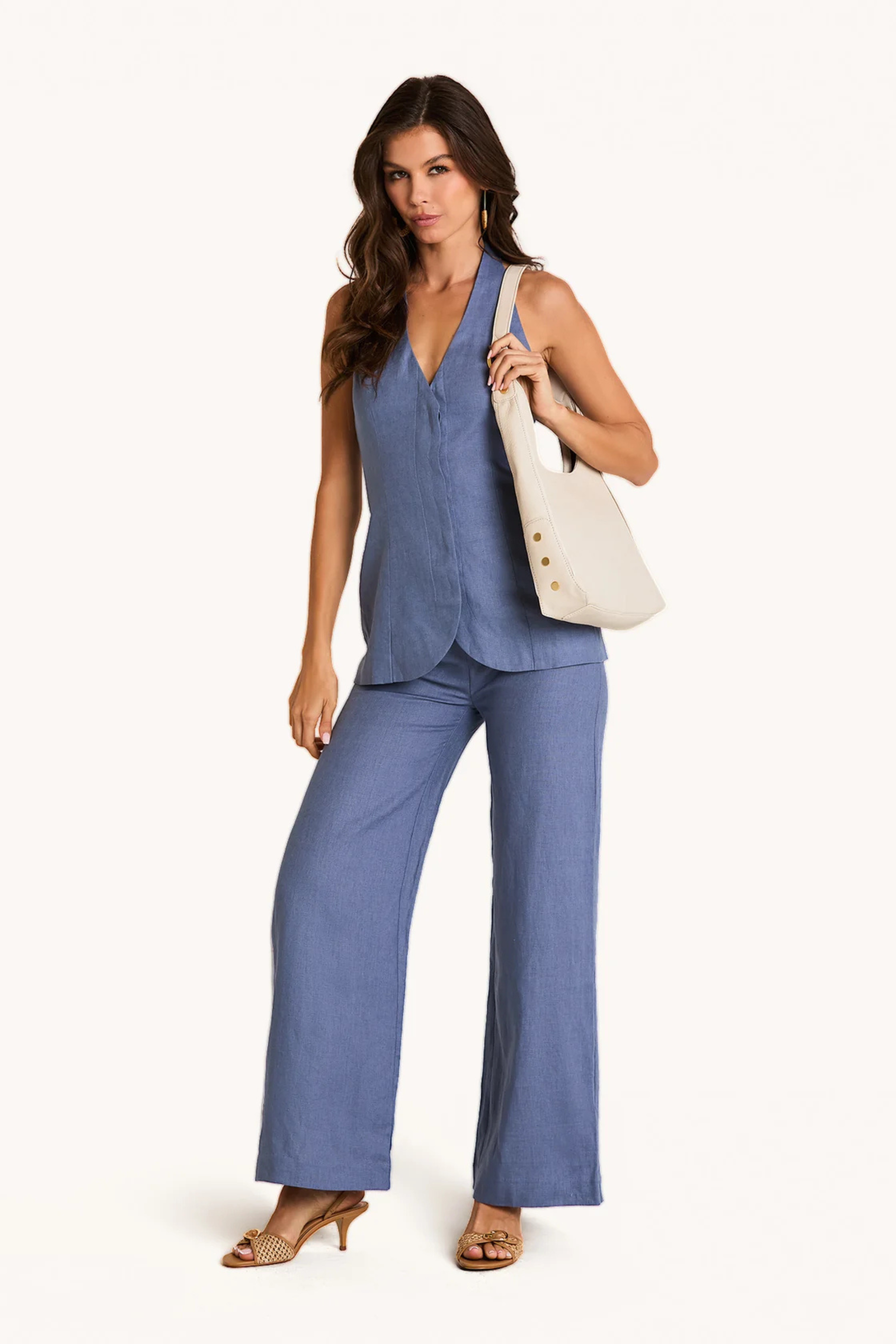 - Crafted with a warm beige pebble leather and Calla Lily White piping details